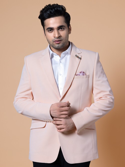Terry Rayon Solid Reception Wear Peach Blazer