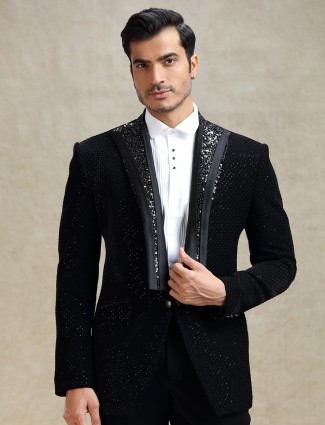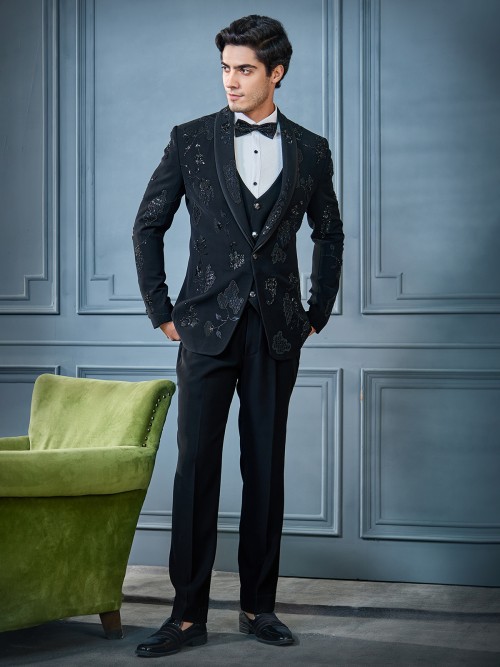 Black Designer Tuxedo In Rich Embellishments