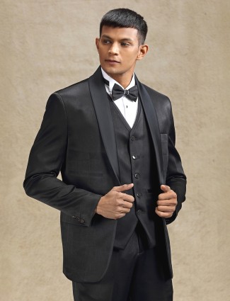 Black Terry Rayon Blazer Suit For Festive Occasions