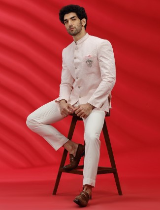 This refined Metallic Grey two-piece suit is designed for the modern gentleman, featuring a notch lapel and a sophisticated two-button closure. Two side pockets and a patch pocket on the left combine practicality with a sleek aesthetic. Buttoned cuffs and a curved hem lend a touch of elegance, making it ideal for weddings, receptions, and formal events. Made from soft terry rayon, it offers both comfort and sophistication. (Shirt shown is for photoshoot purposes only.)