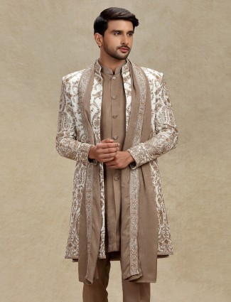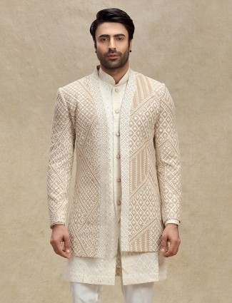 Beige Silk Indo Western With Aabla Elegant Detailing