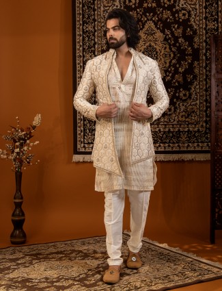 Beige Sophisticated Indowestern Set For Reception Wear