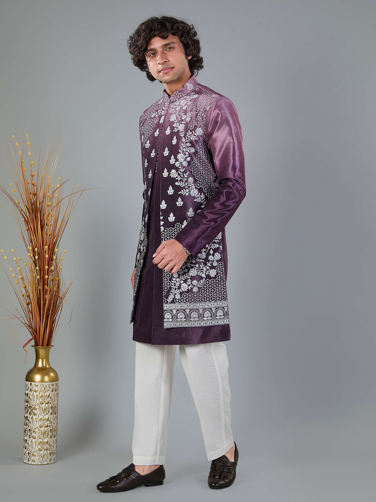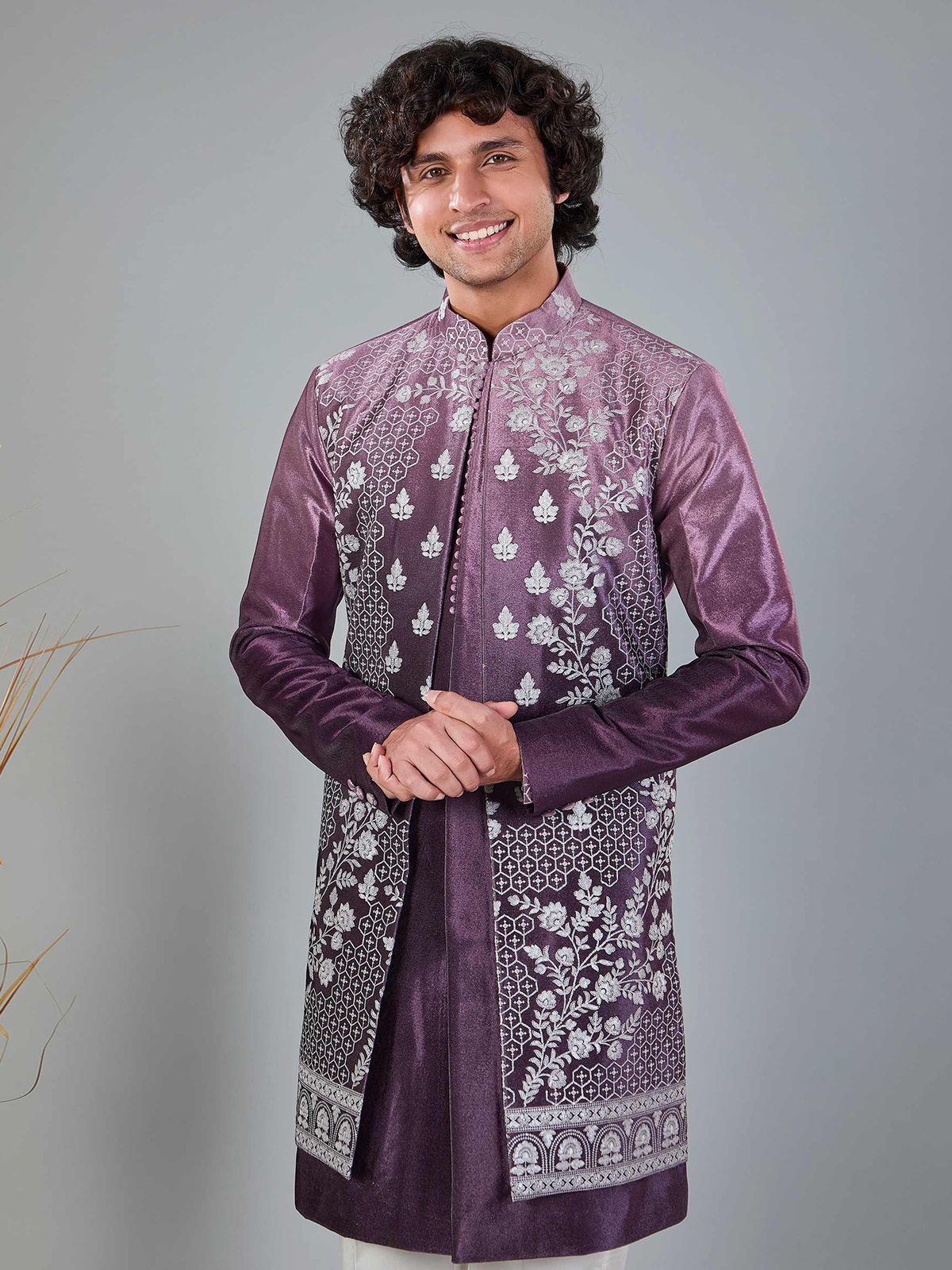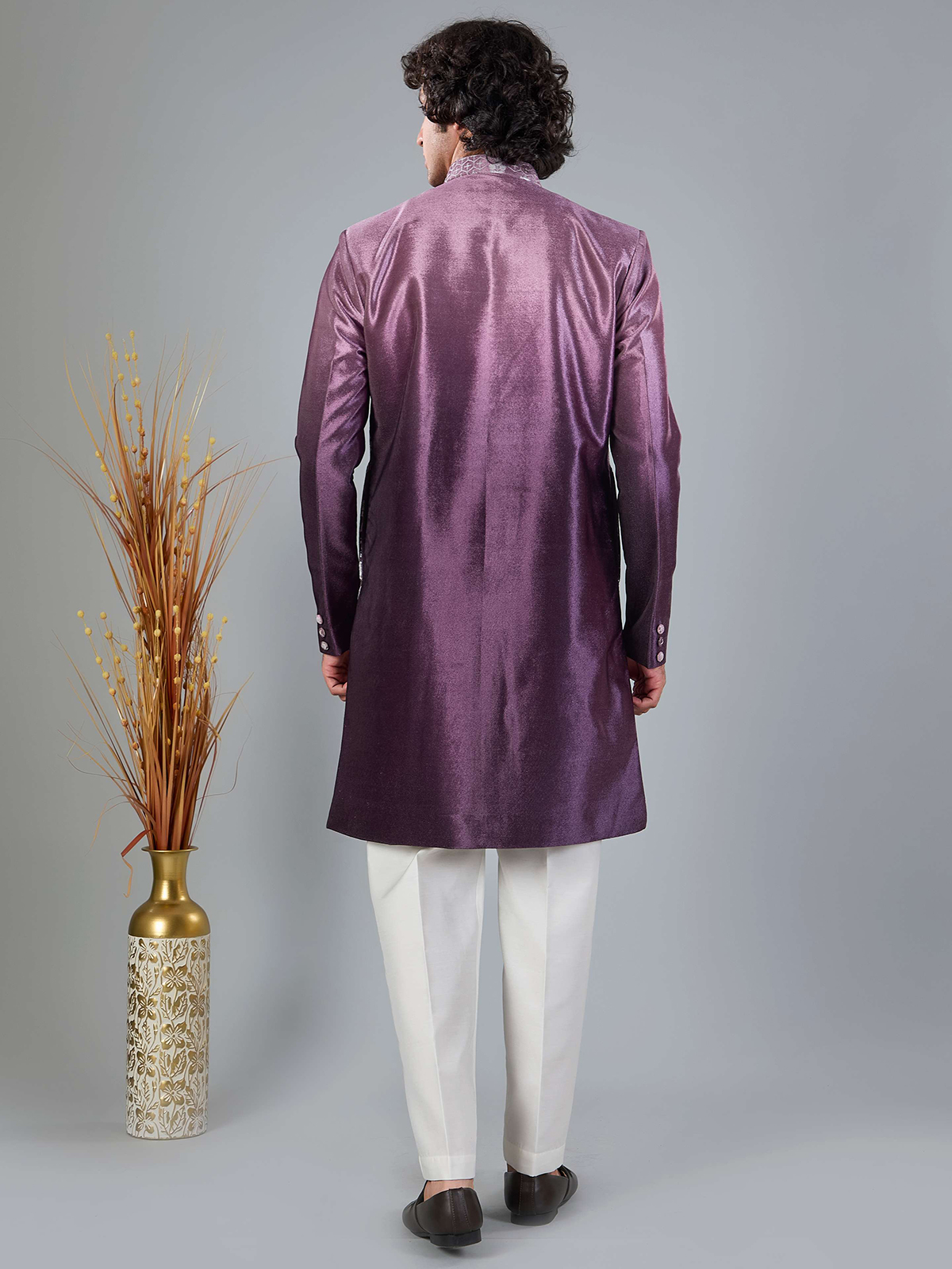 Pastel Purple Shaded Silk Indowestern Pant Set