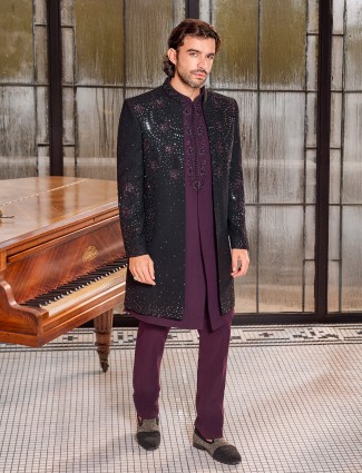 Royal Black And Purple Indo Western Jacket
