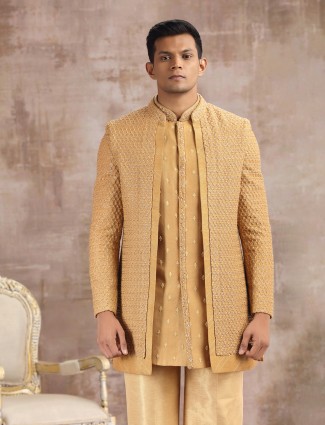 Yellow Silk Indo Western With Sequins Weaving