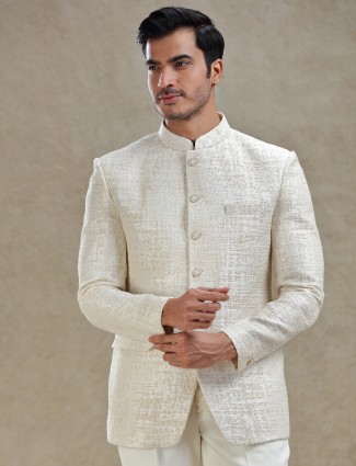 Cream Textured Jodhpuri Set