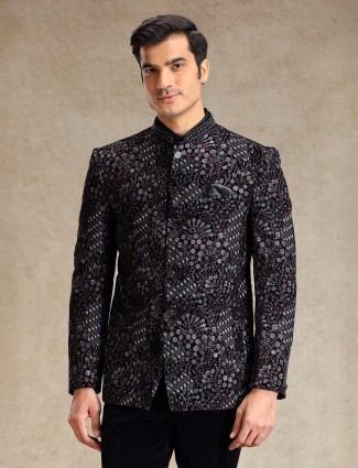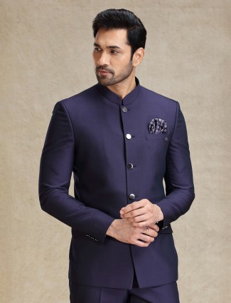 Dark Purple Jodhpuri Suit With Textured