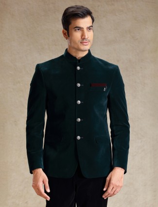 Green Jodhpuri Suit In Velvet