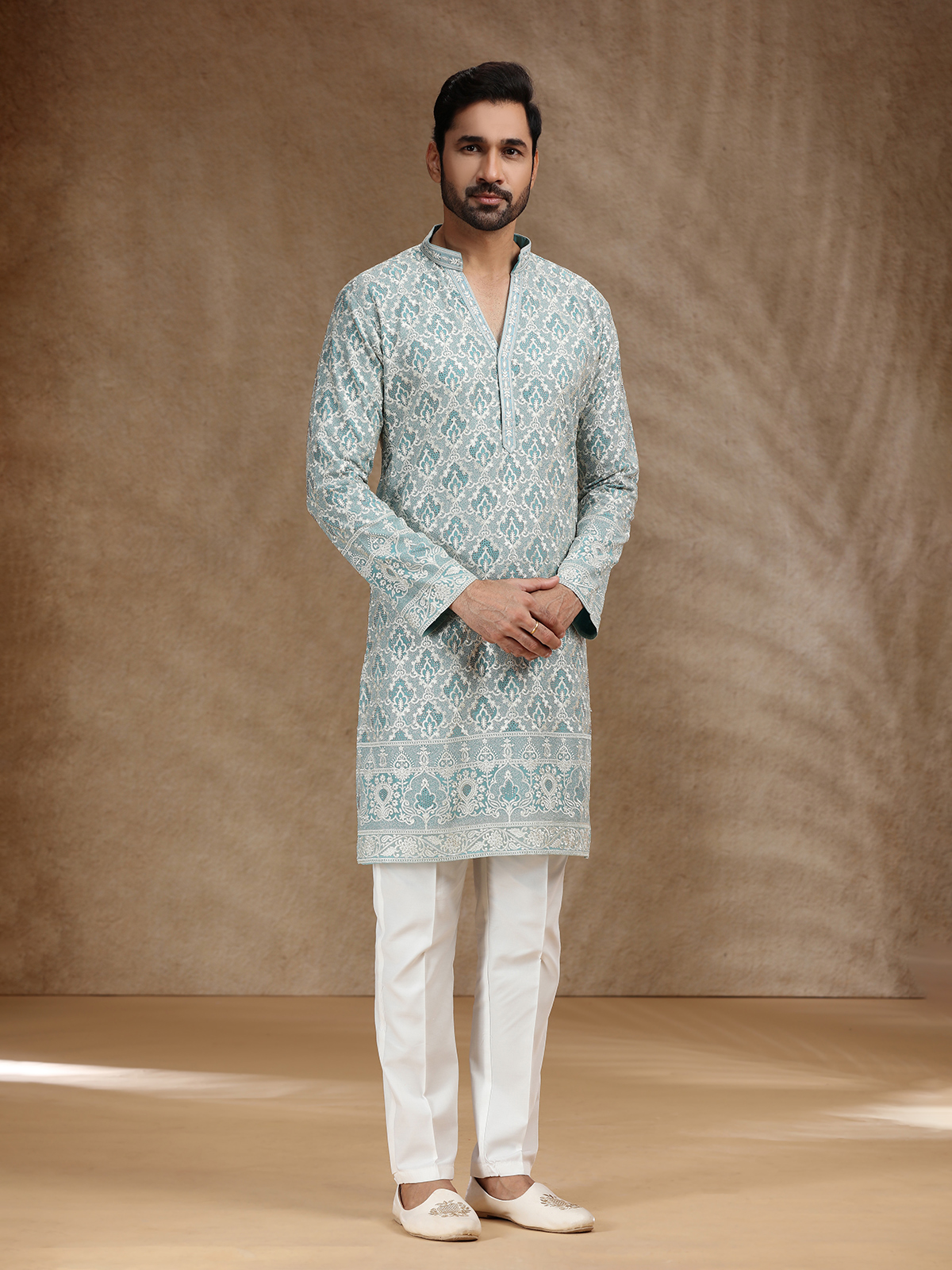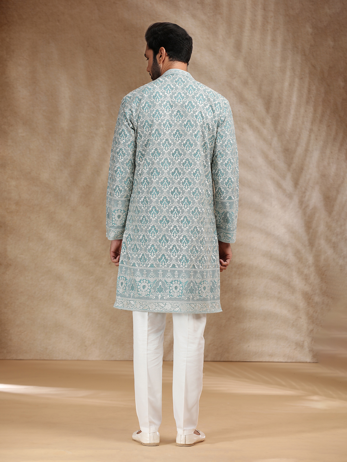 Aqua Georgette Men Festive Kurta Pajama