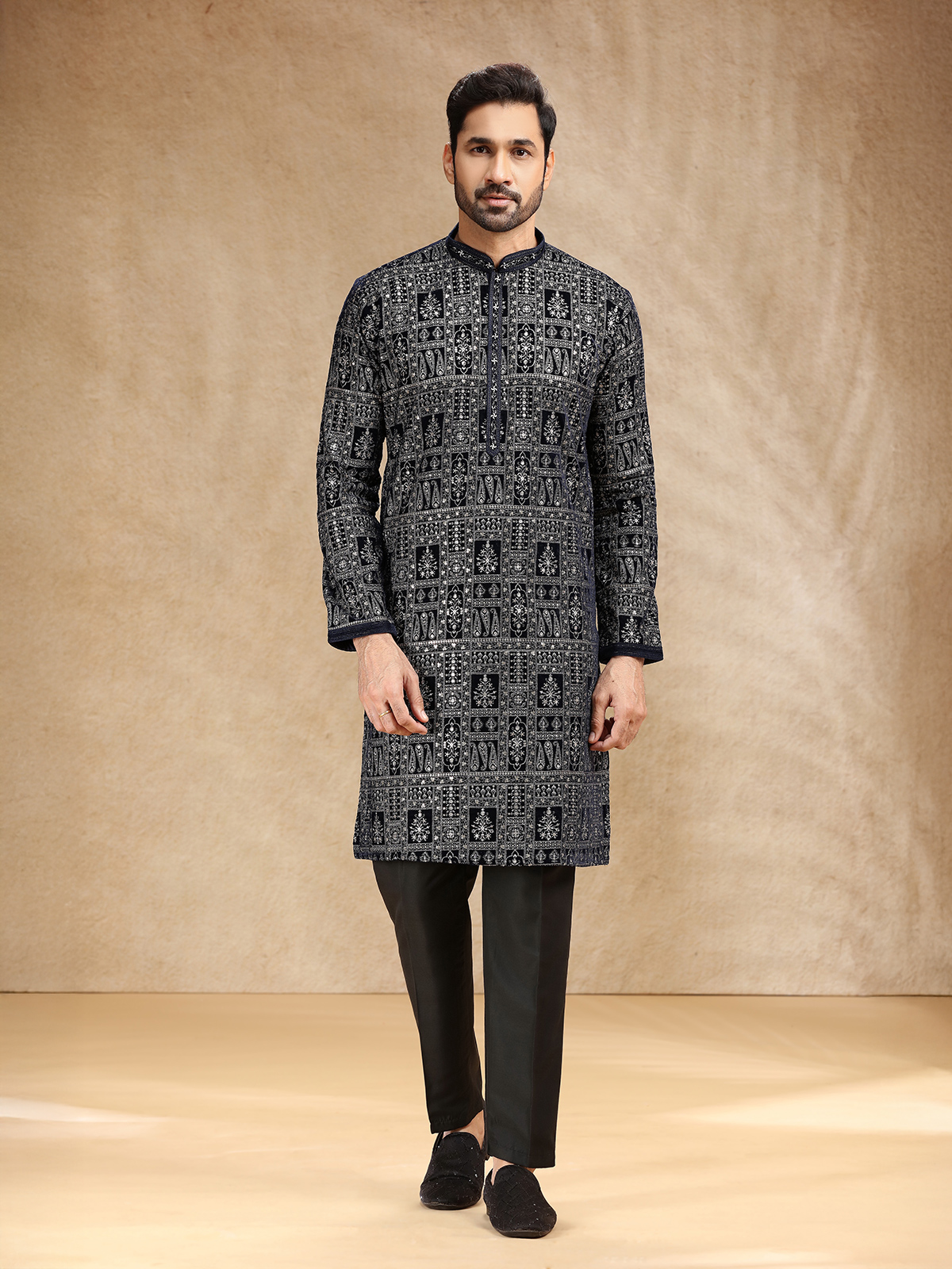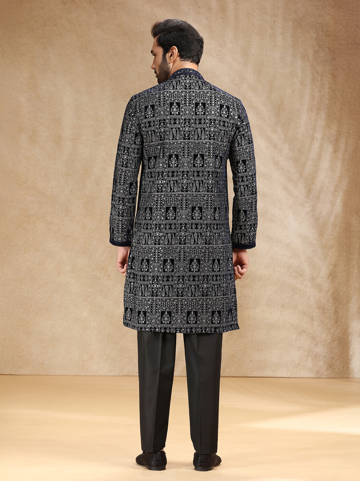Black Velvet Kurta Suit Enhanced With Resham Work