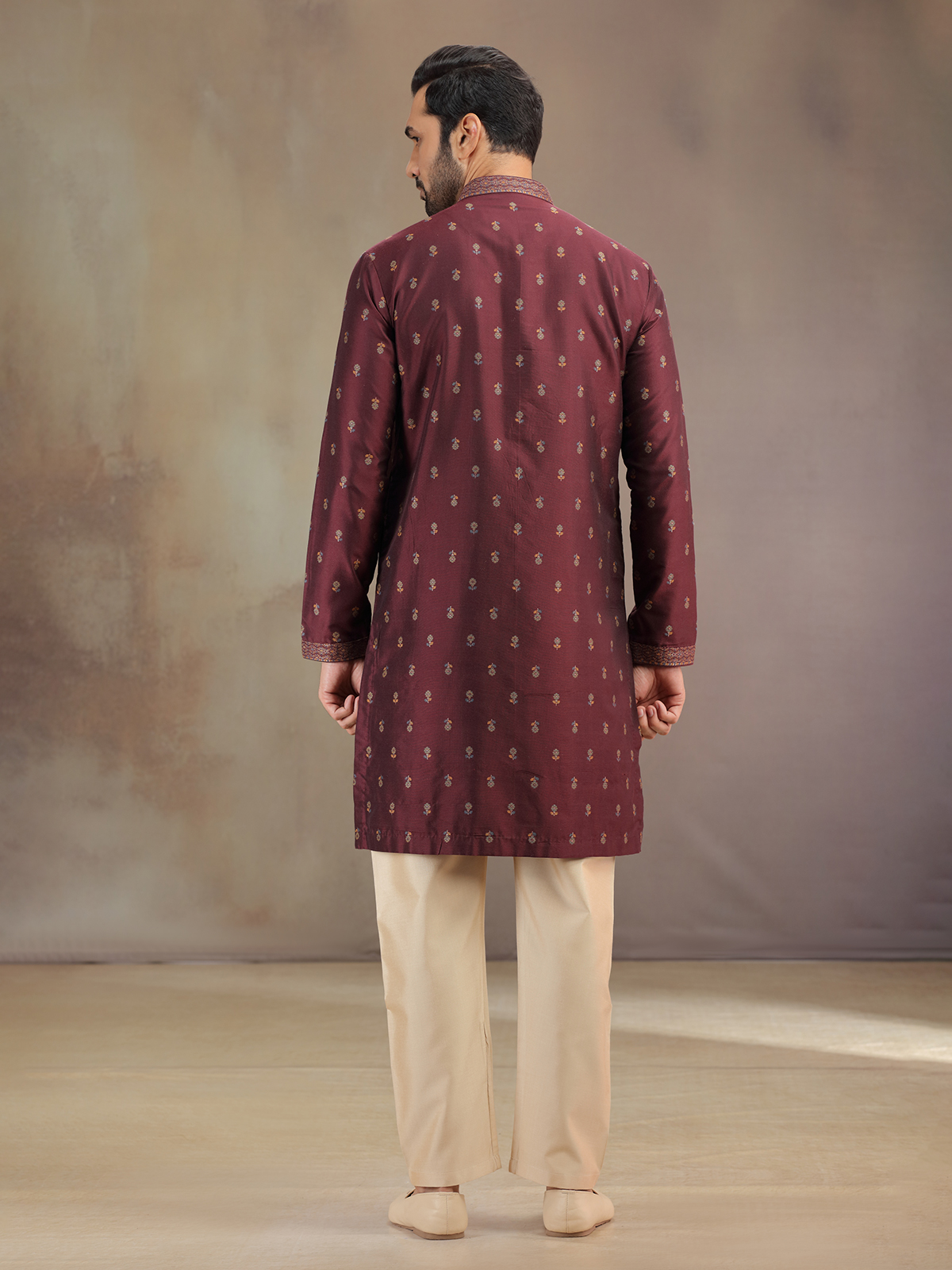 Brown Wedding Cotton Silk Kurta Pajama Set