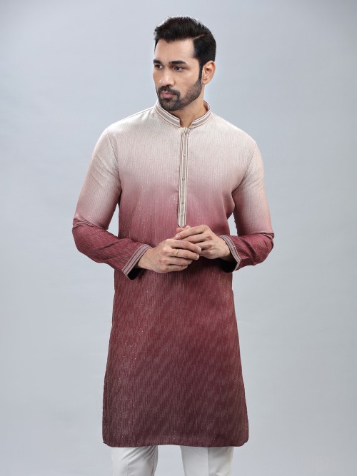 Classy Wine Georgrette Kurta Suit For Men