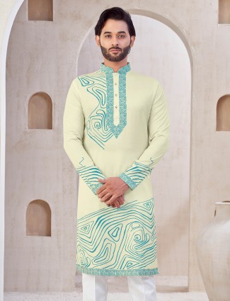 Cotton Cream Printed Kurta Suit For Men