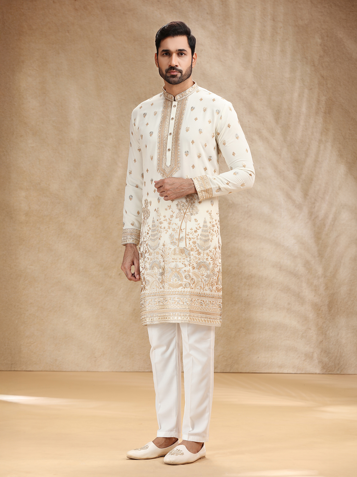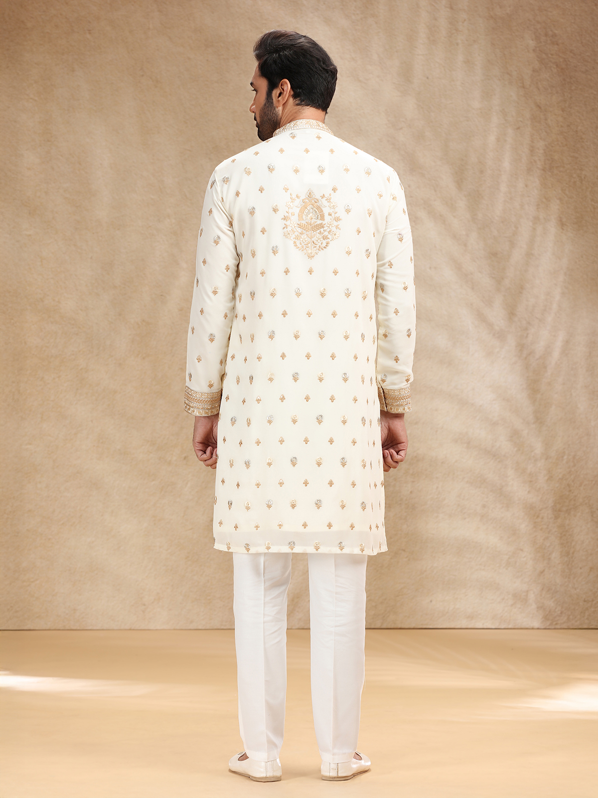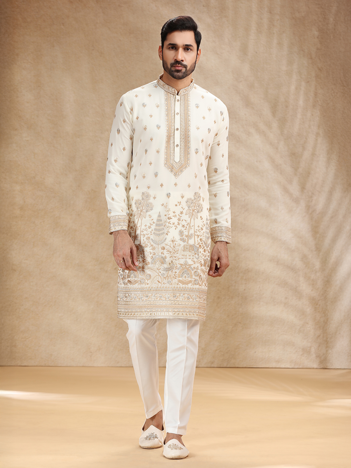 Cream Georgette Kurta Pajama With Intricate Embroidery
