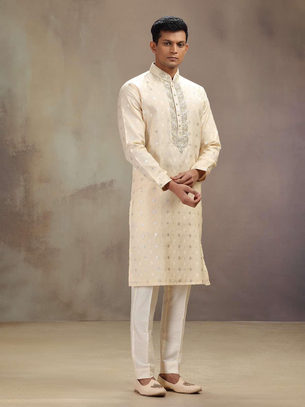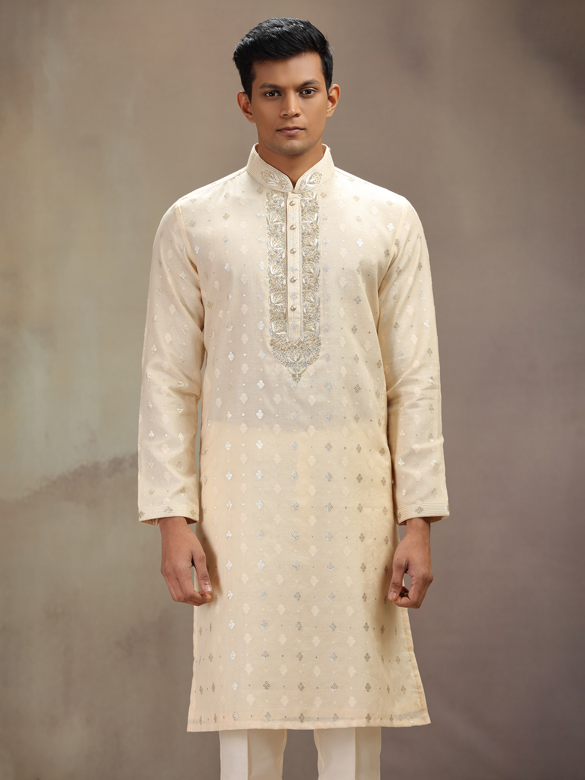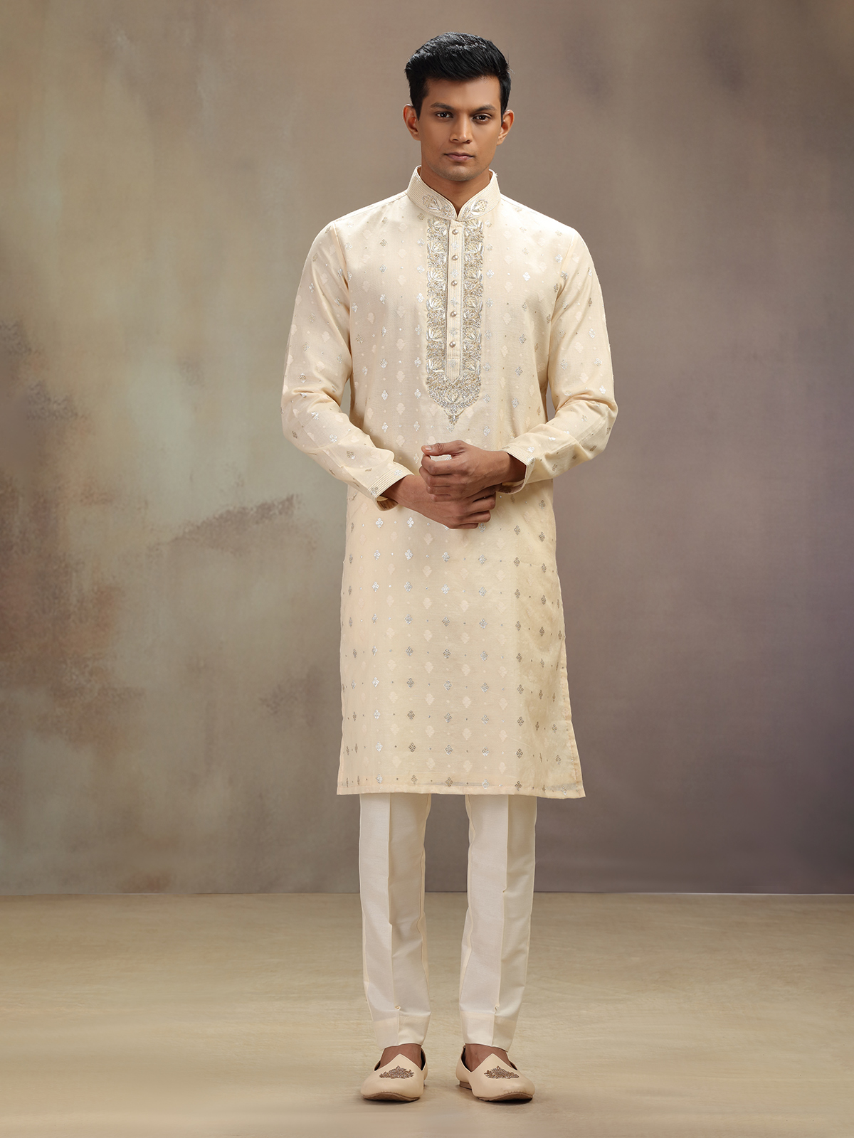 Cream Silk Festive Wear Kurta Suit With Rich Embellishment