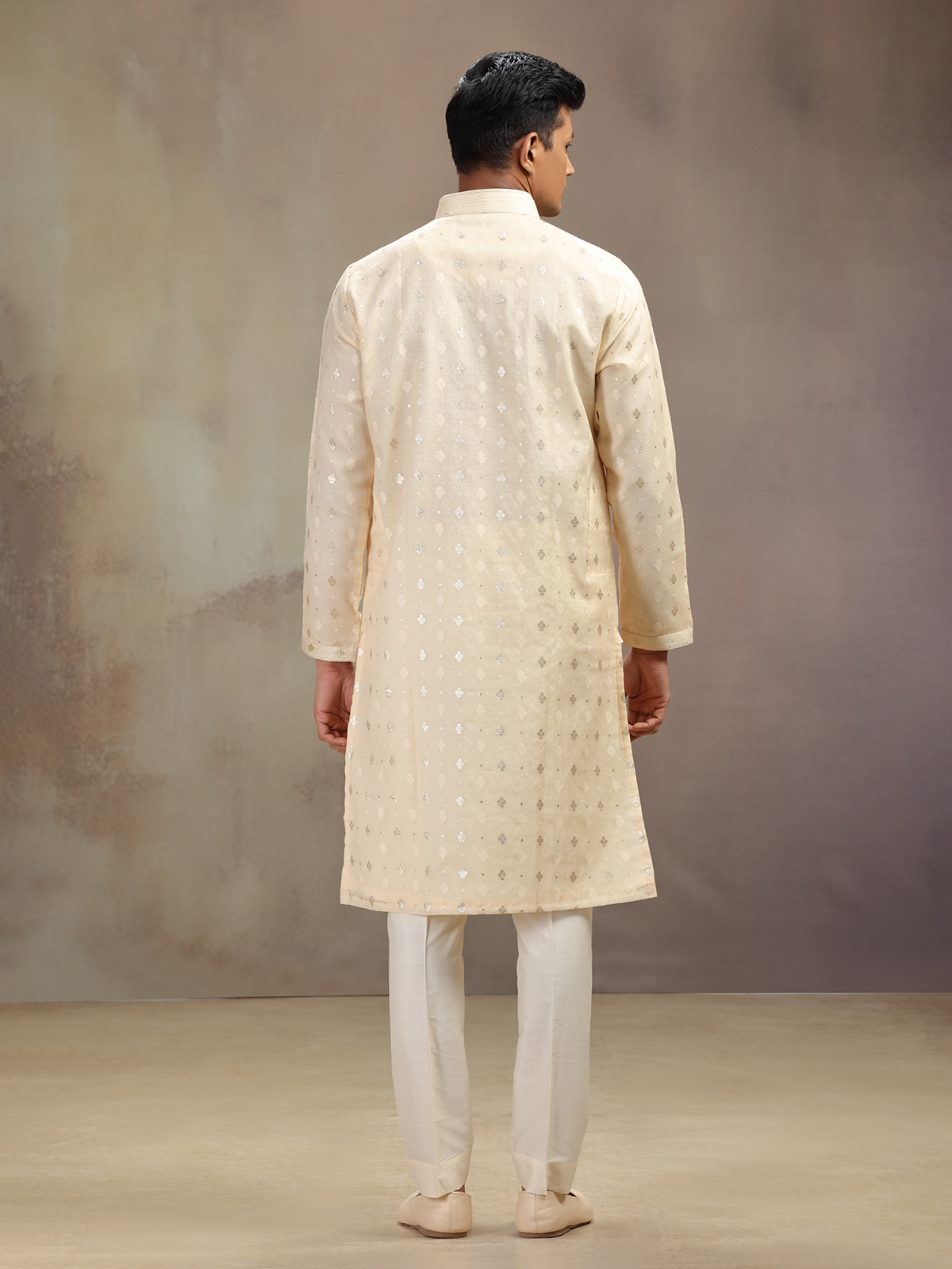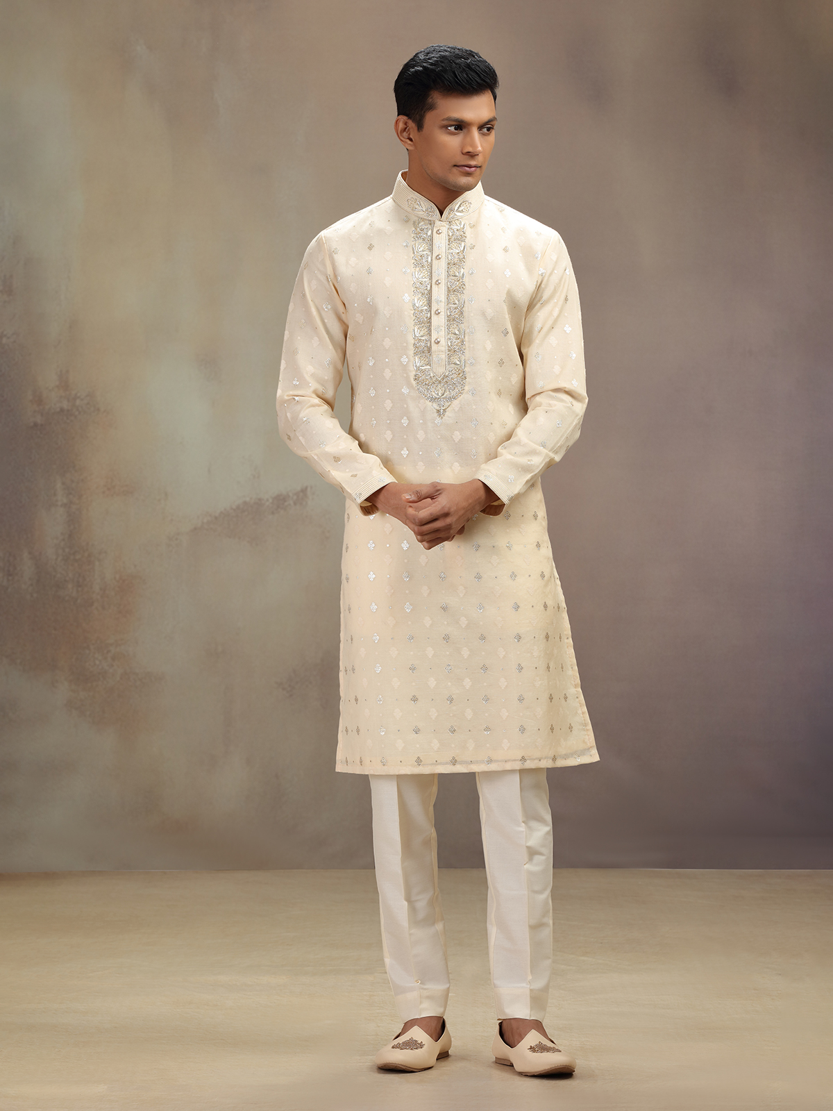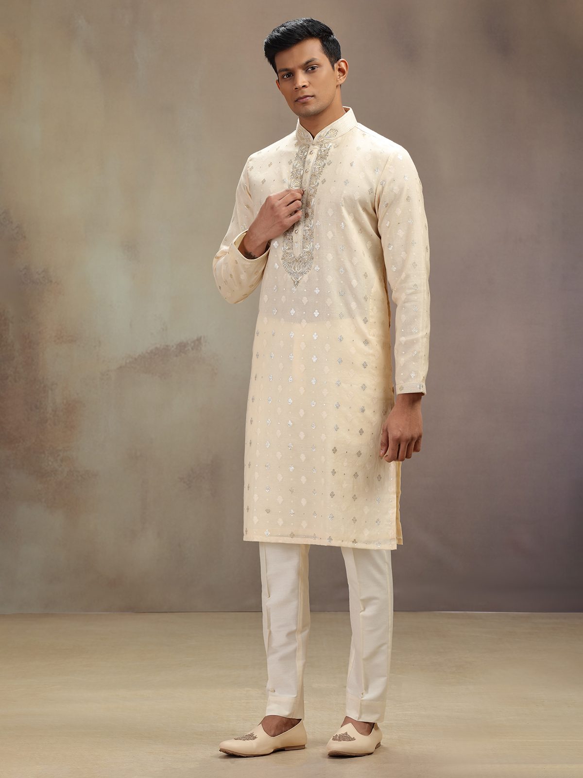 Cream Silk Festive Wear Kurta Suit With Rich Embellishment