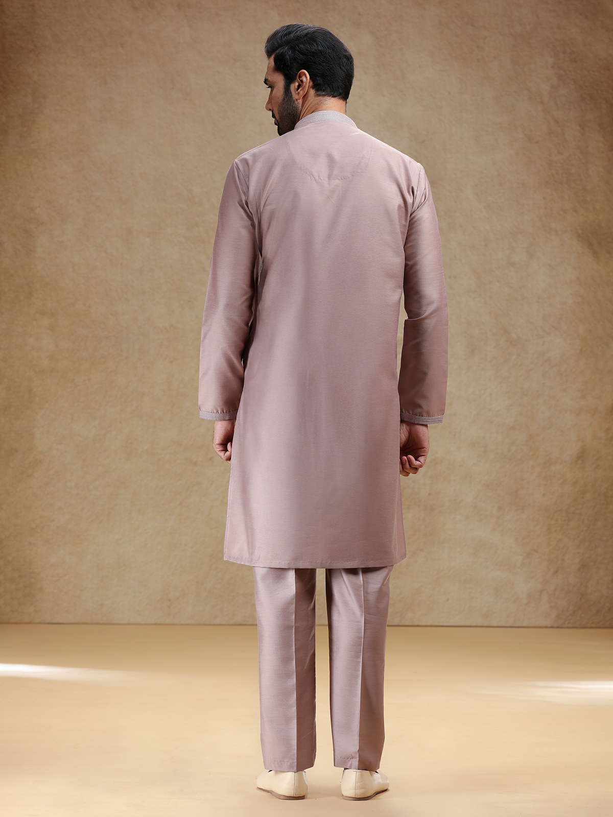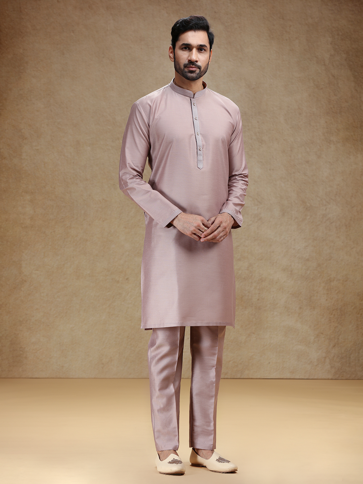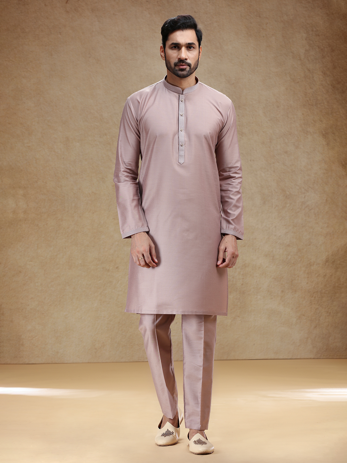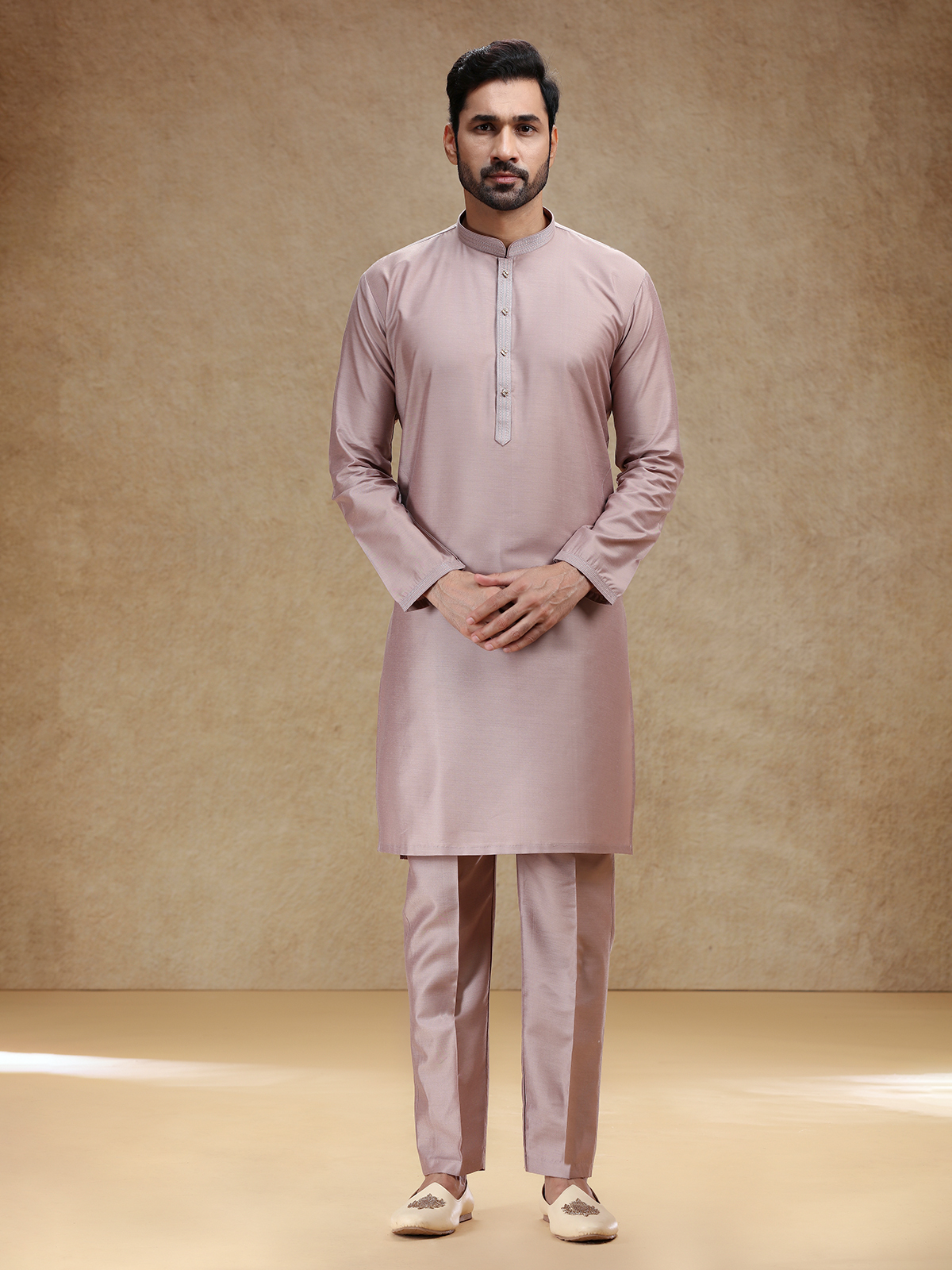Dark Beige Cotton Silk Kurta Pajama For Men