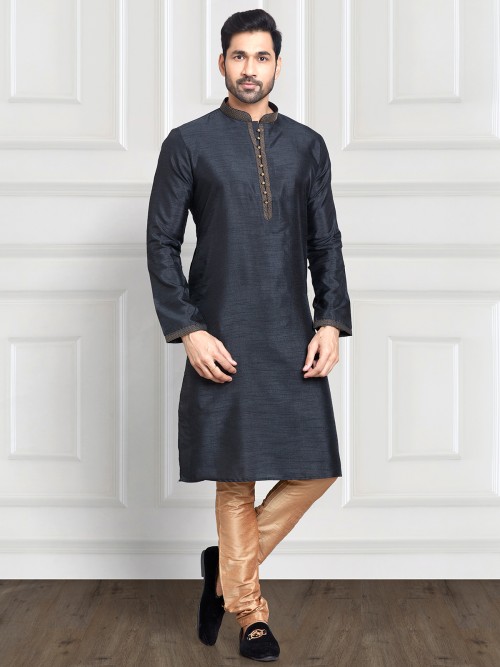 Elegant Black Art Silk Kurta Suit