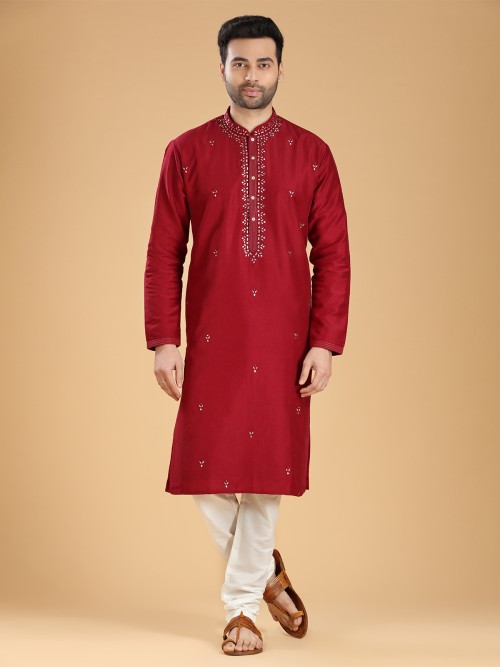 Elegant Silk Kurta Suit In Maroon