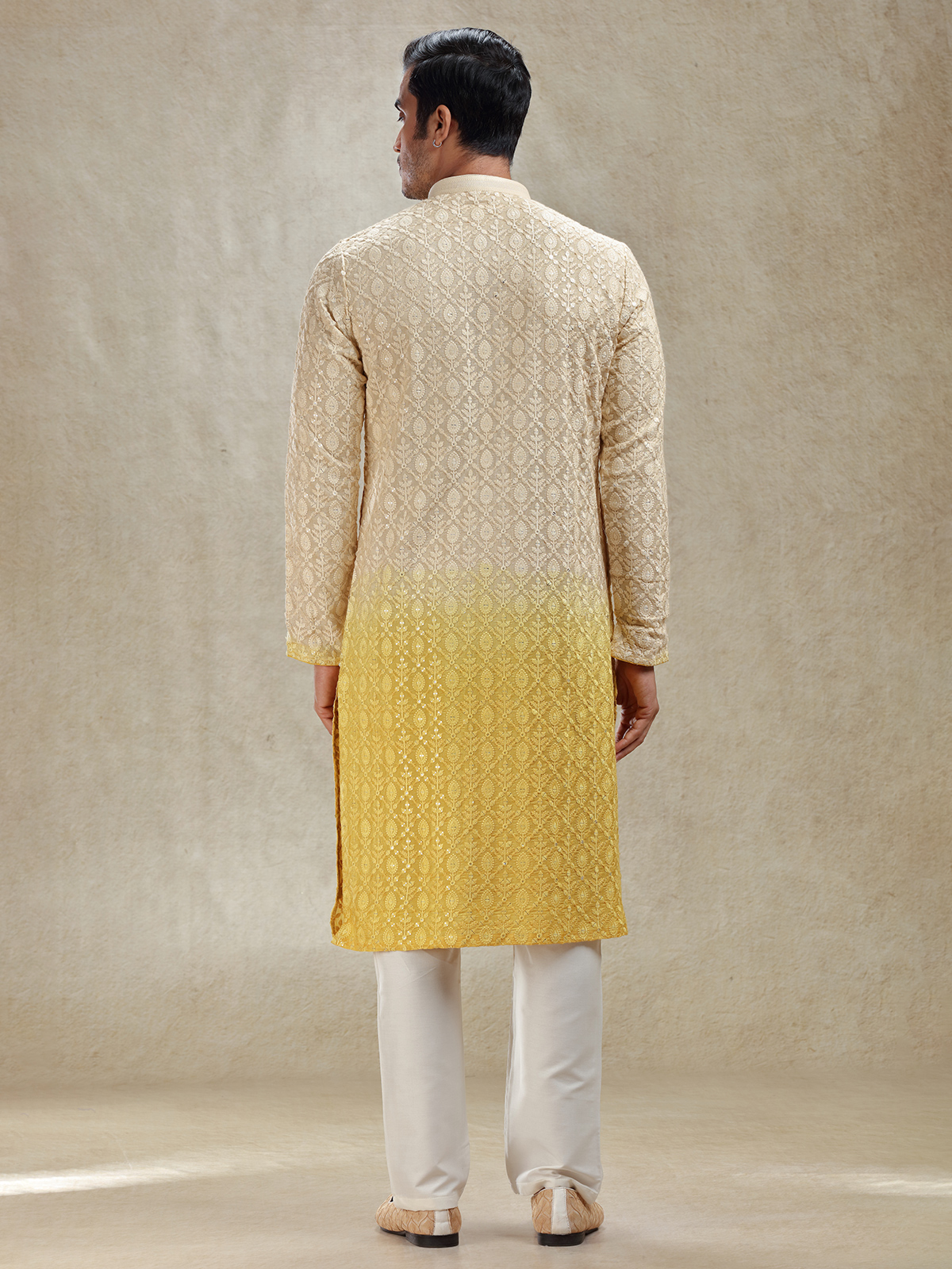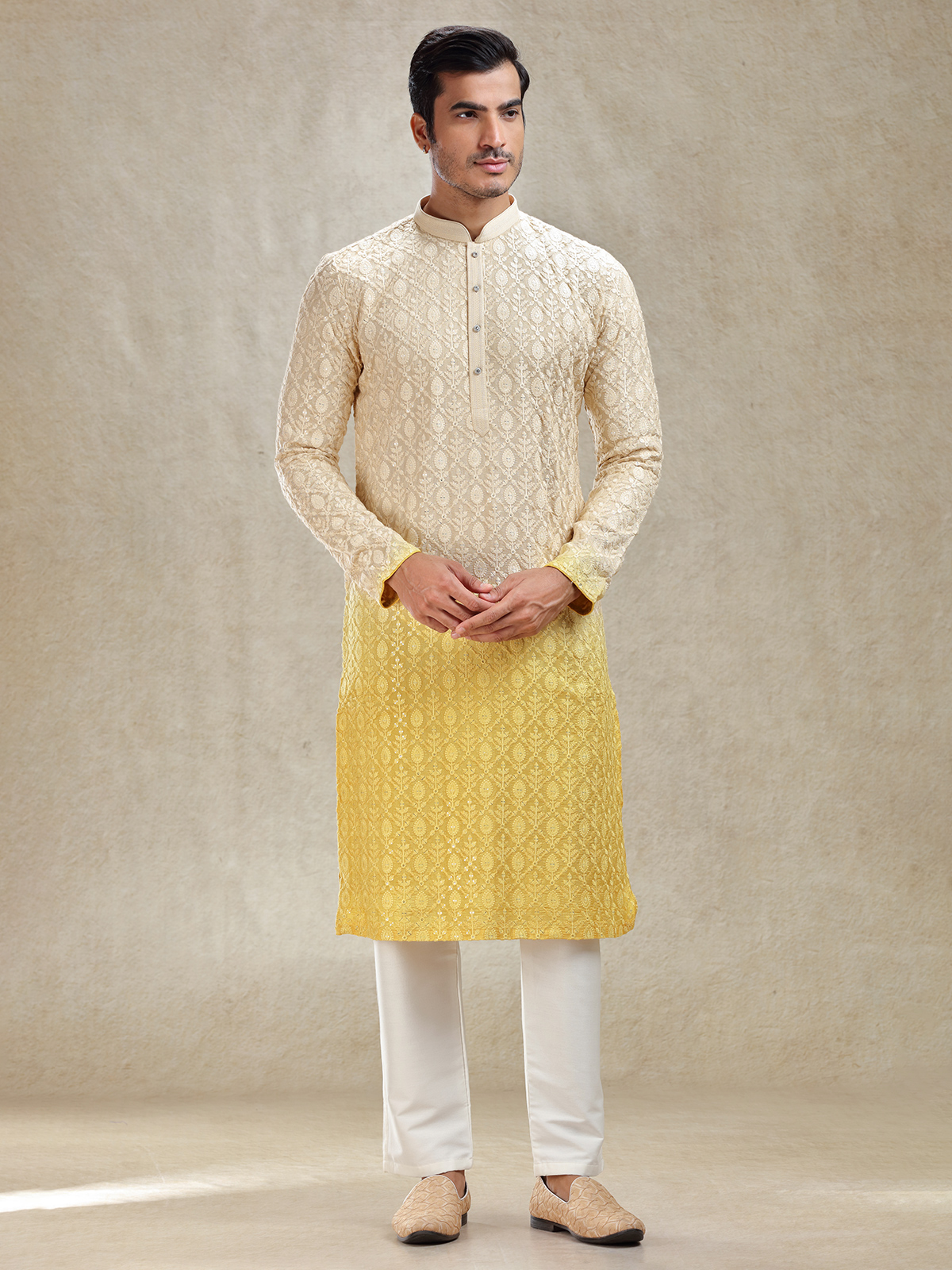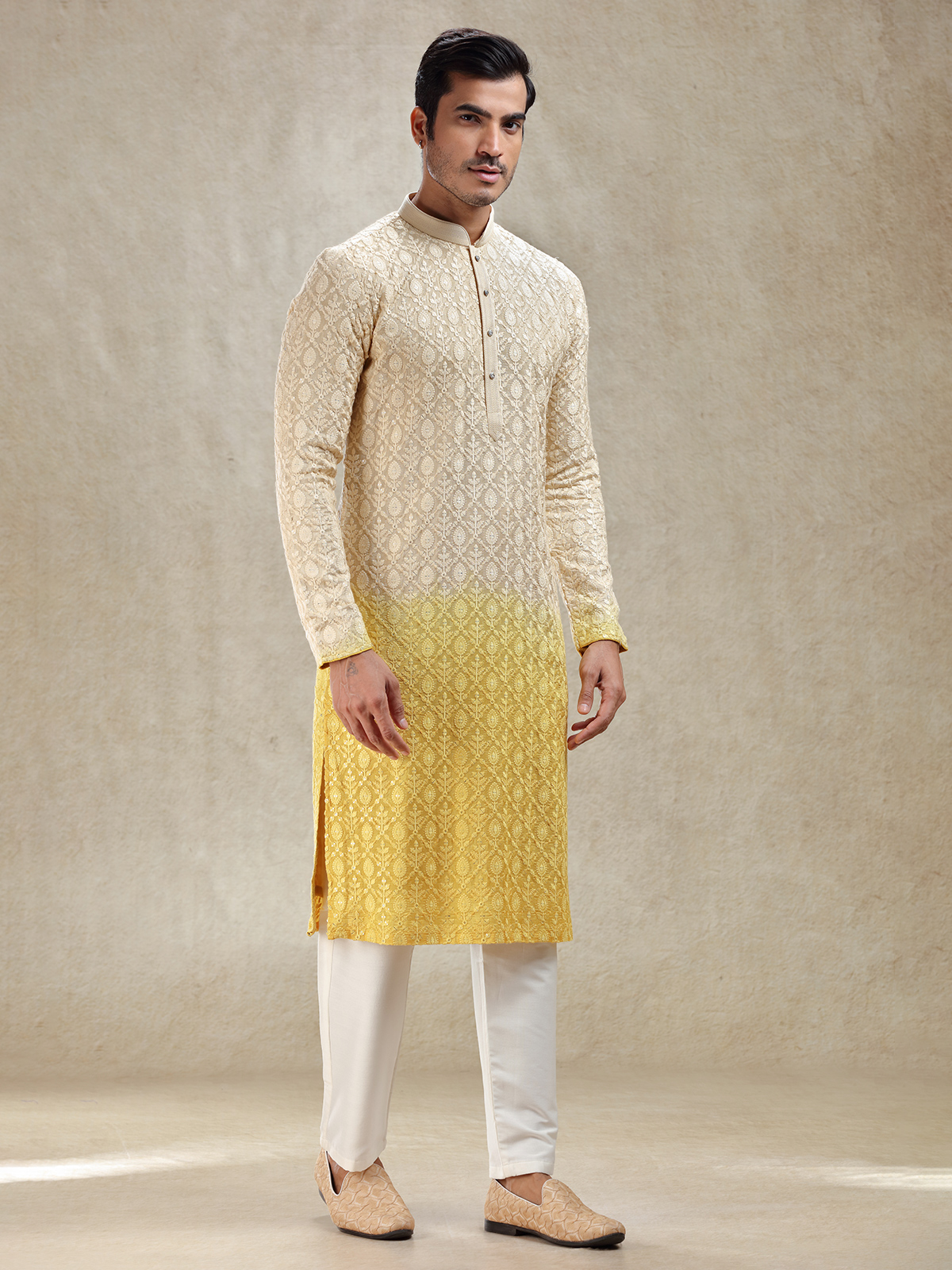 Elegant Yellow Shaded Kurta Pajama Ensemble