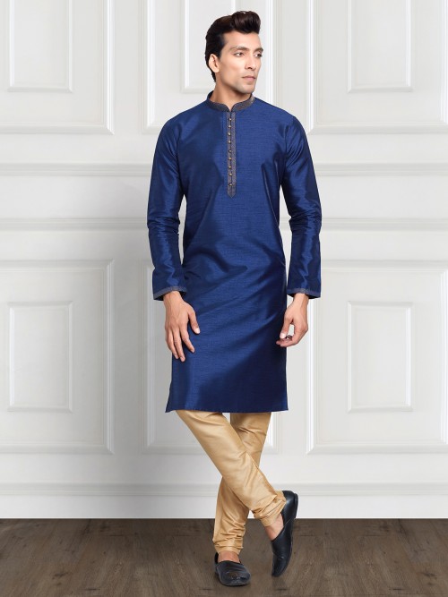 Fabulous Navy Cotton Silk Kurta Suit