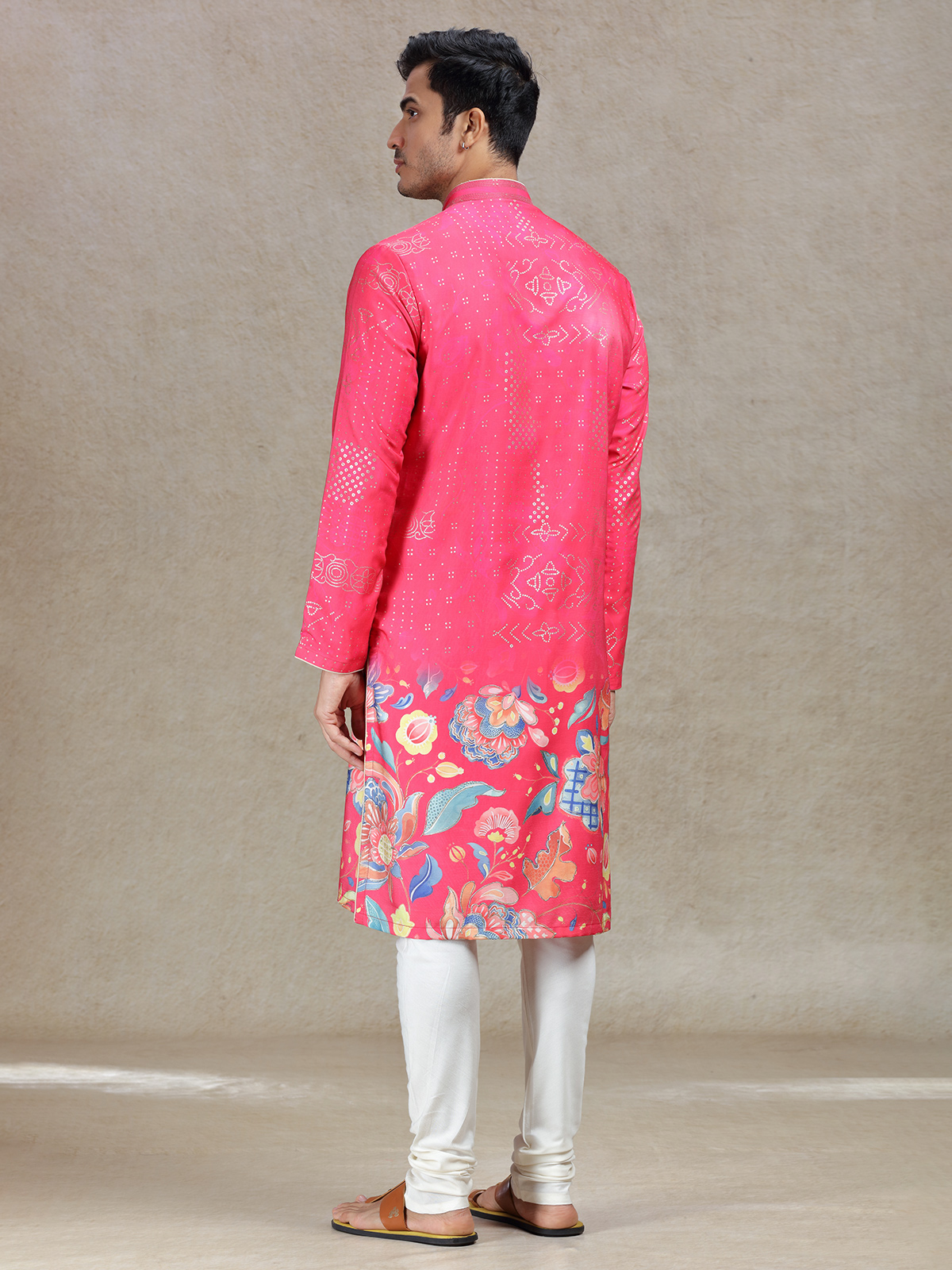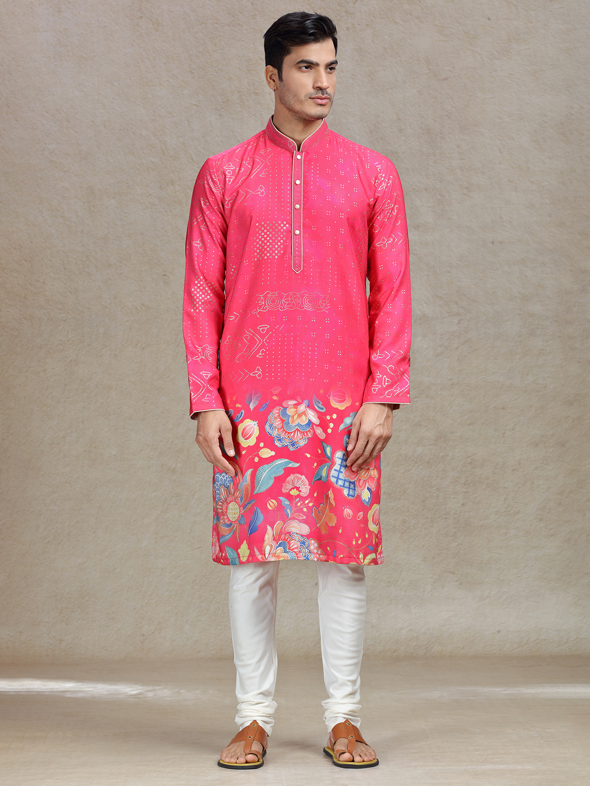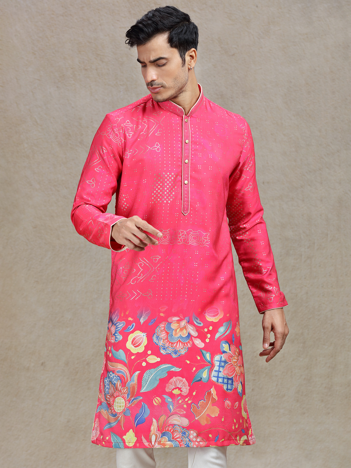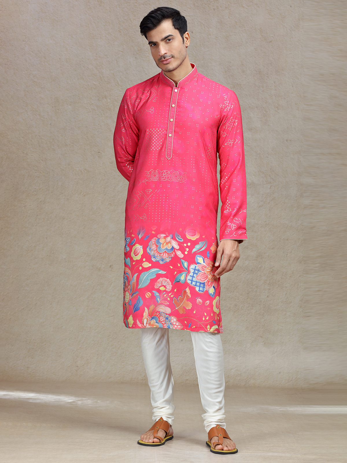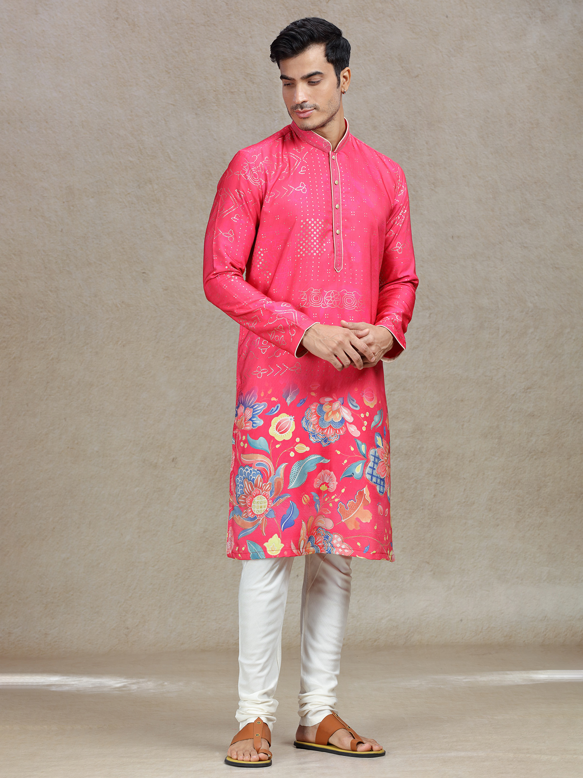 Fuchsia Pink Vibrant Tussar Silk Kurta Suit For Men's