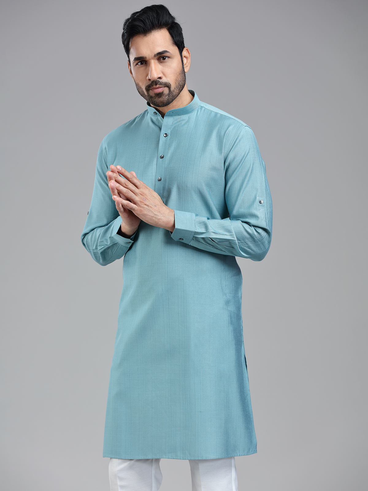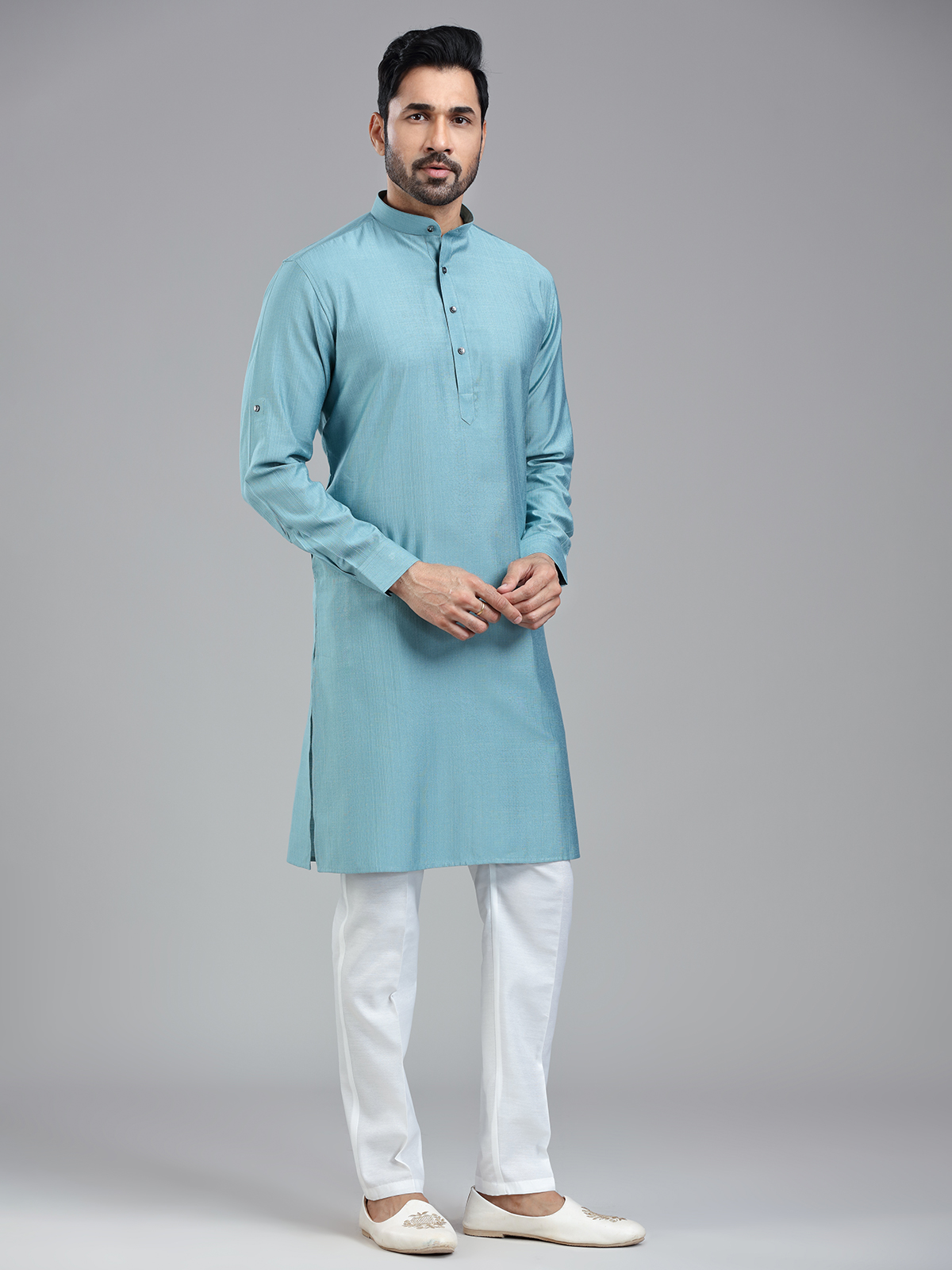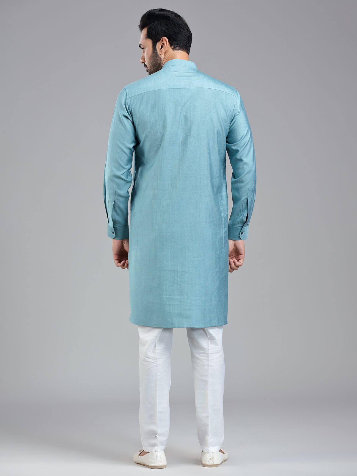 Latest Firozi Blue Solid Festive Wear Kurta Suit For Men