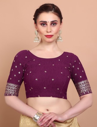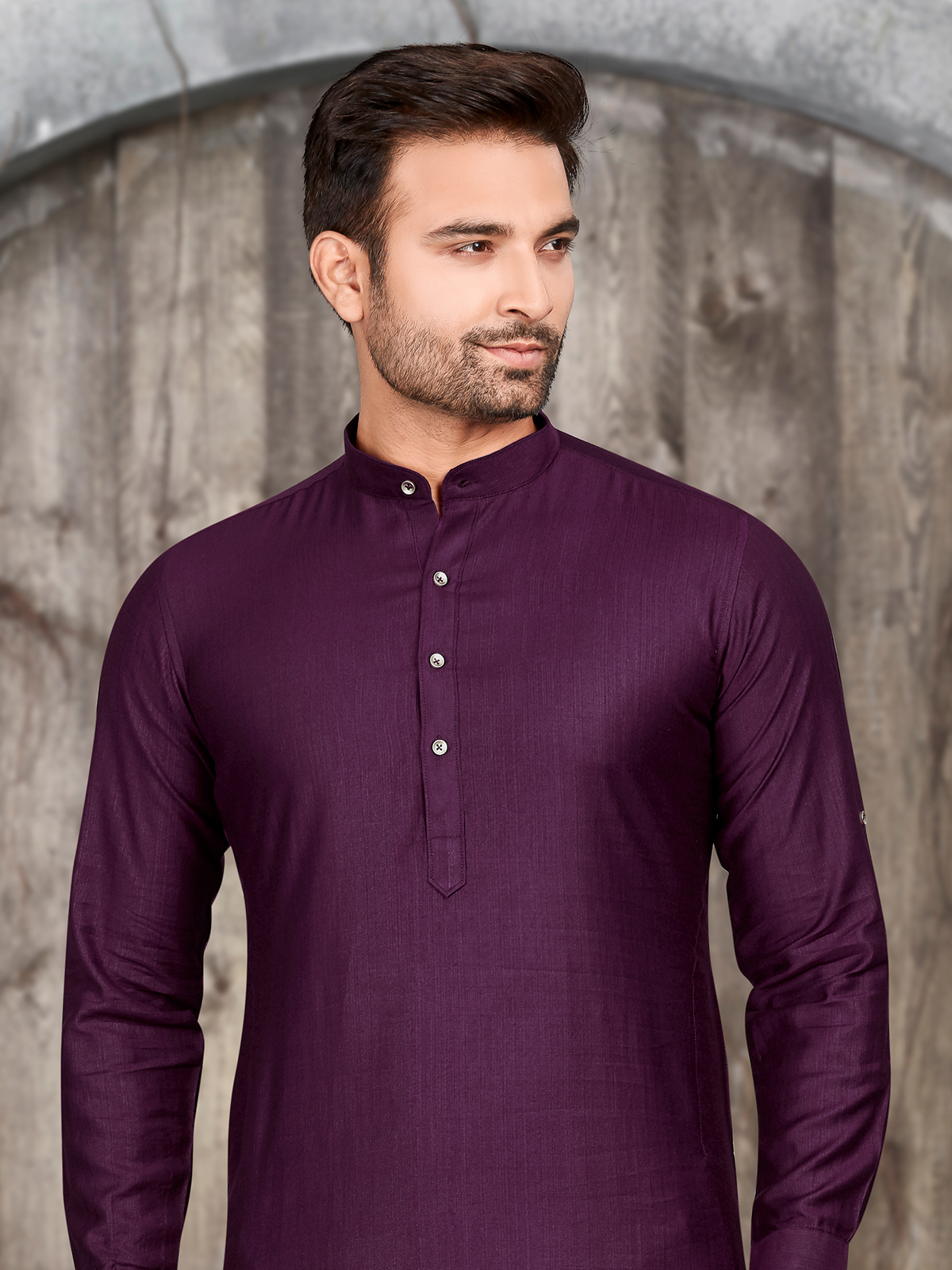 Take a fashion forward stance by wearing this purple plain silk kurta suit. The mandarin collar and full sleeves makes it a captivating choice.