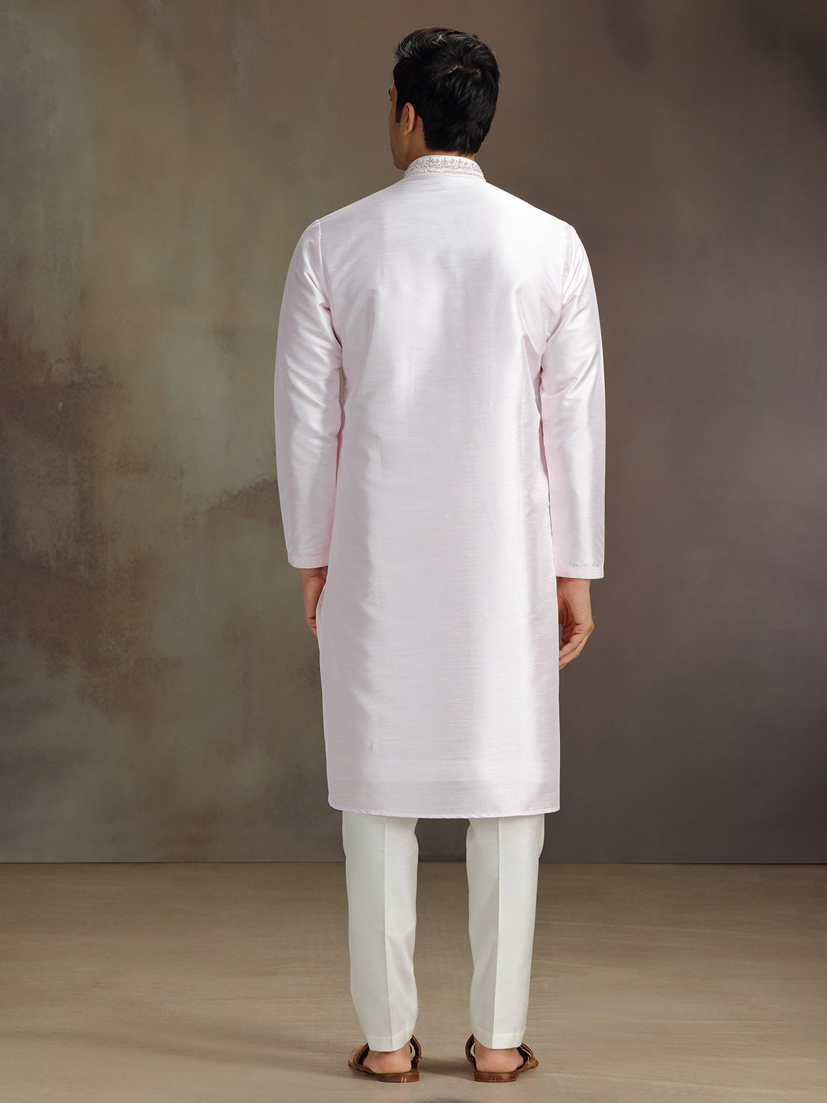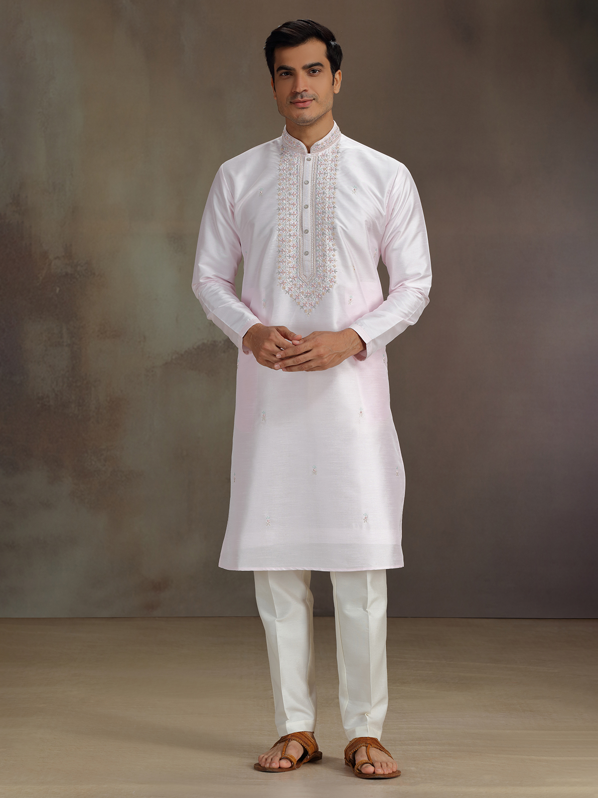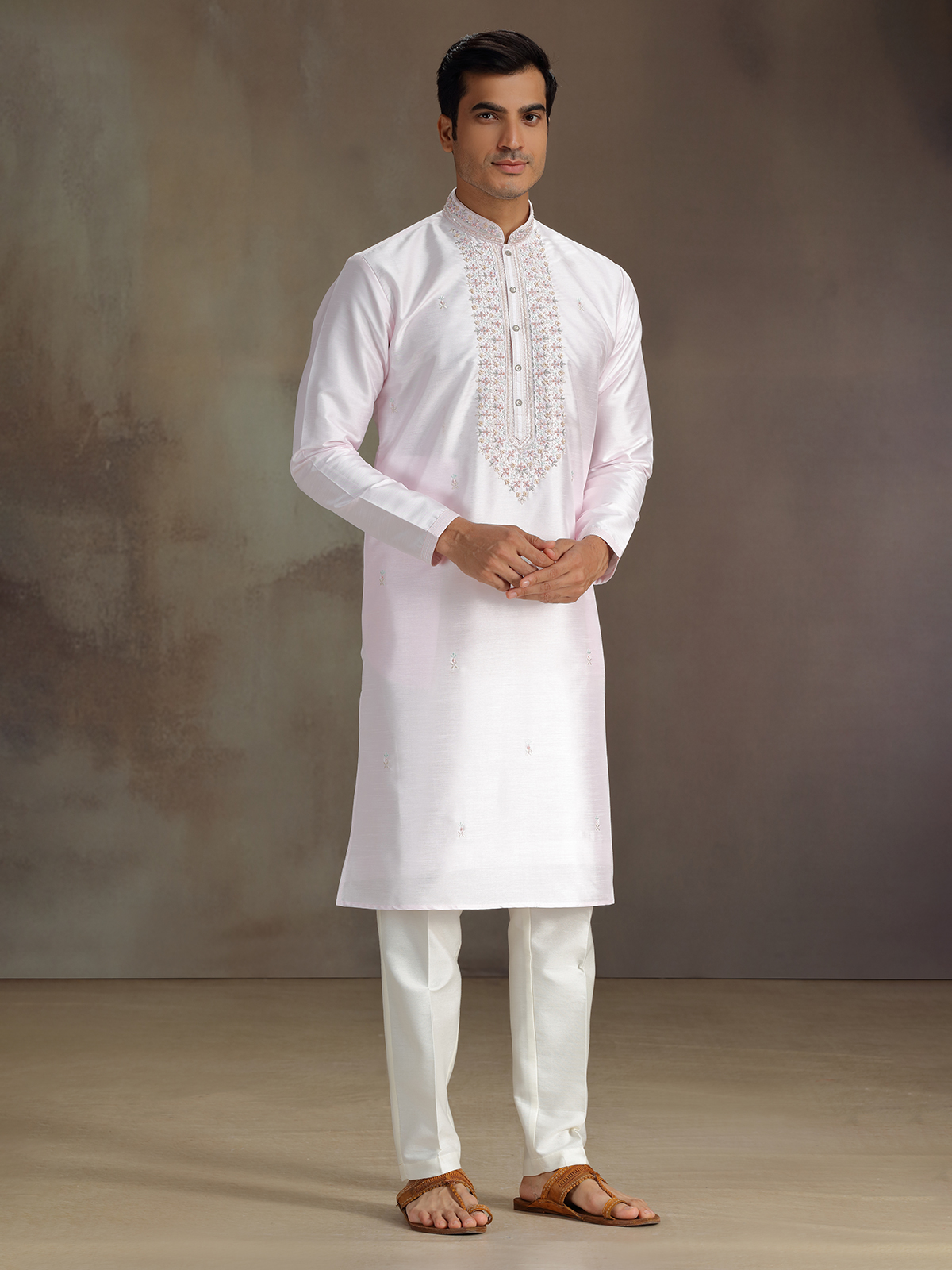 Light Pink Silk Embroidered Beaded Festive Kurta Suit