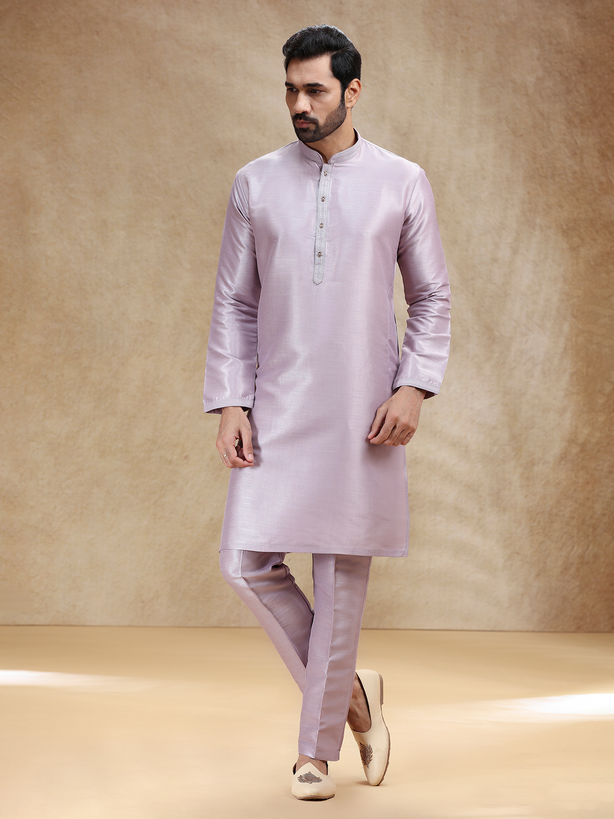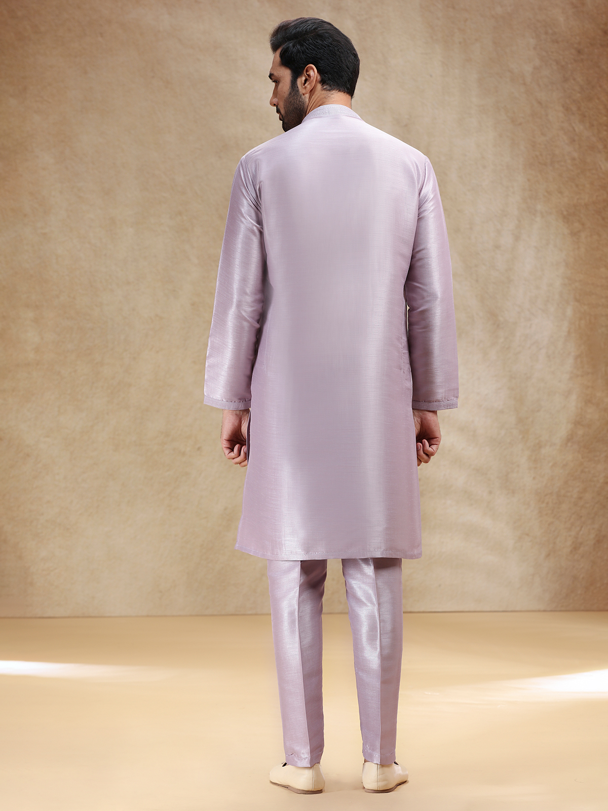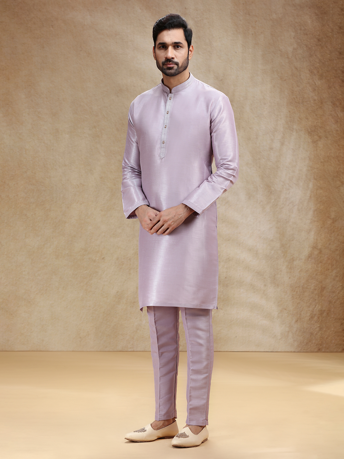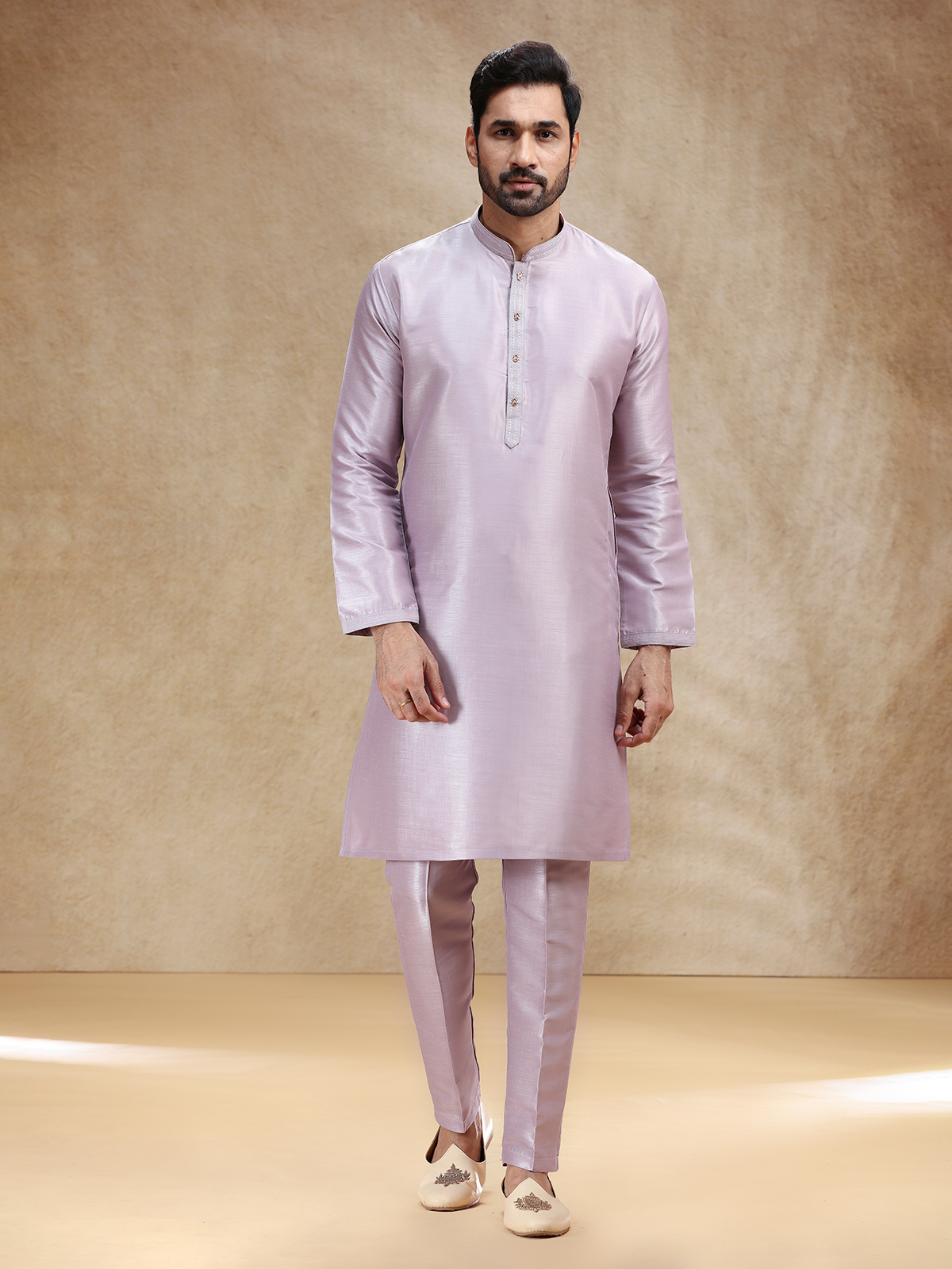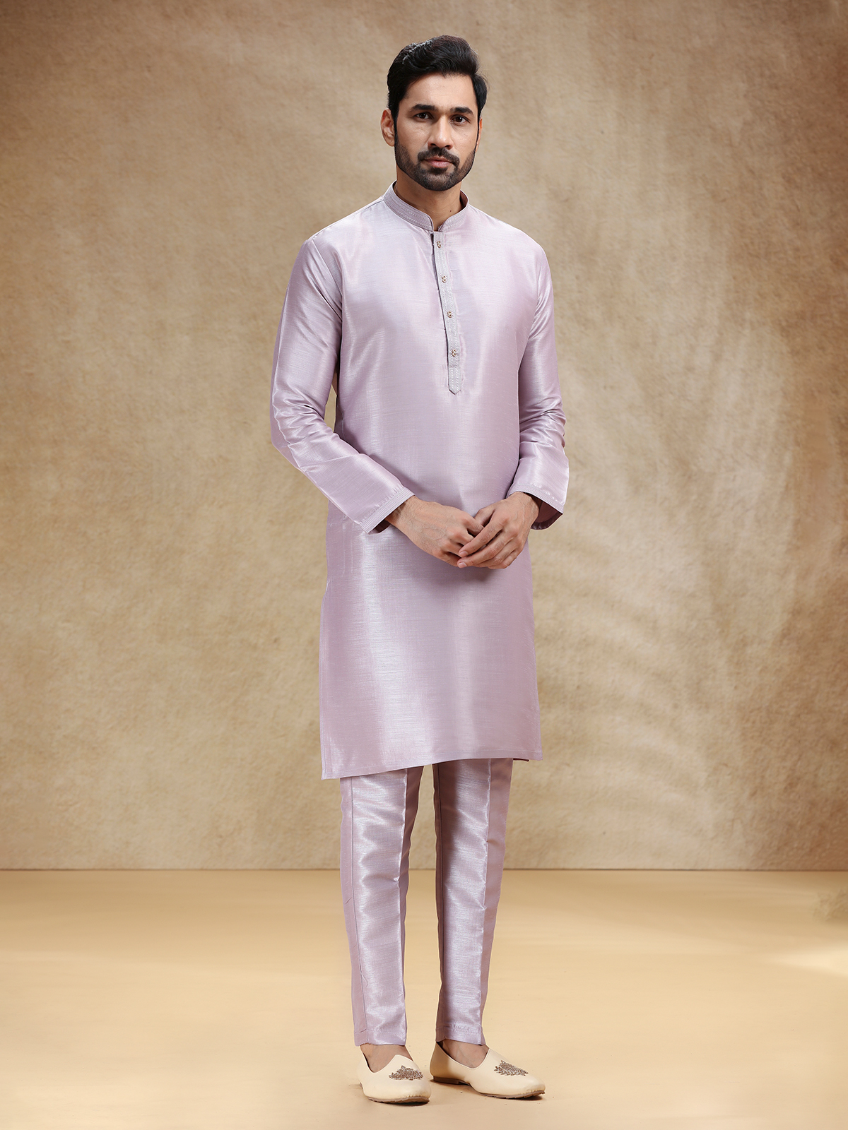 Lilac Purple Cotton Silk Kurta Pajama For Men