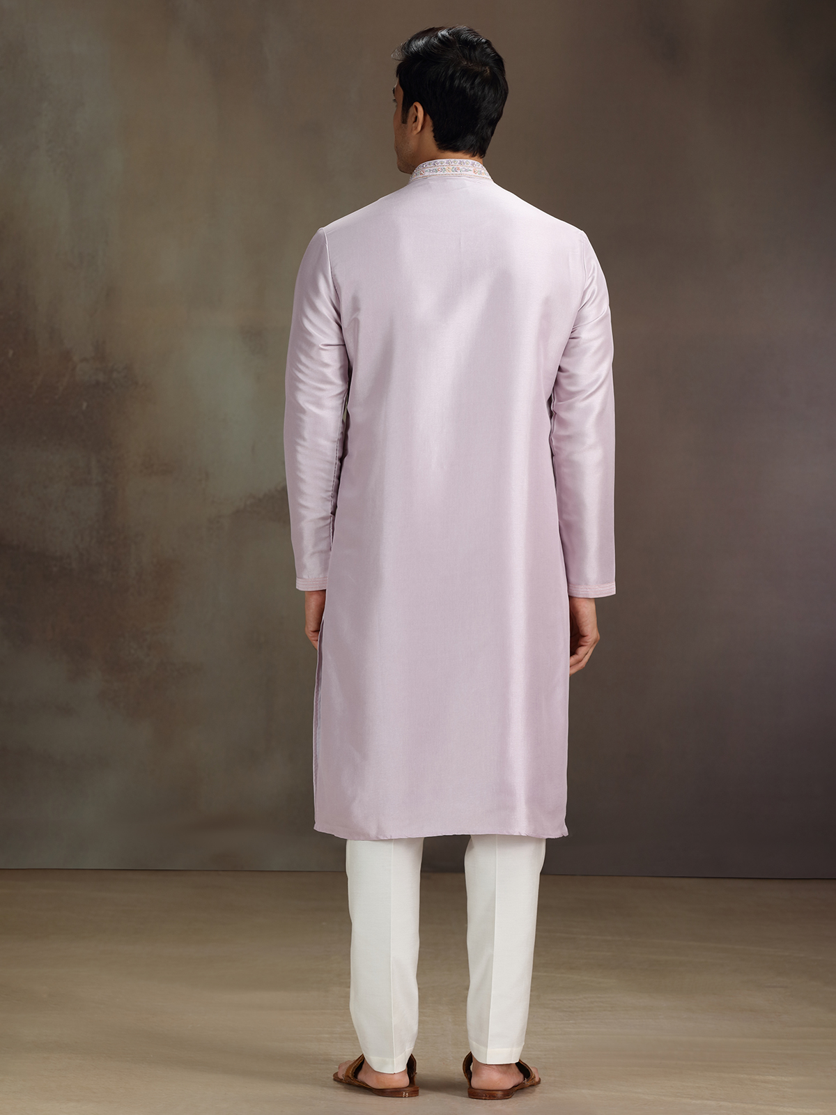 Lilac Purple Silk Cutdana Embellished Wedding Kurta Suit