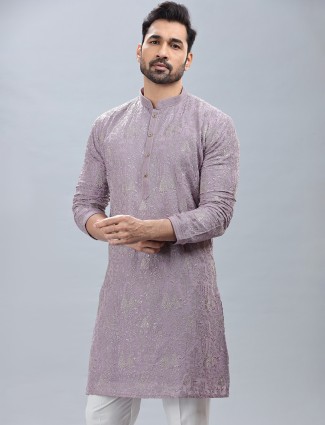 Magenta Silk Beaded Sequined Thread Work Kurta Suit