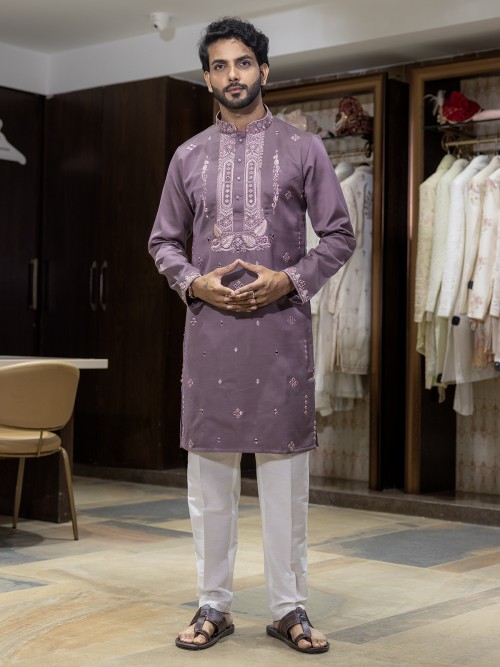 Mouve Pink Cotton Silk Kurta Suit For Festive Celebration