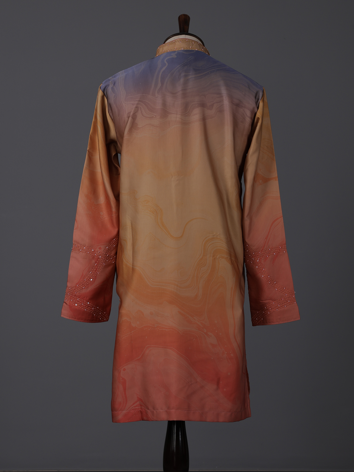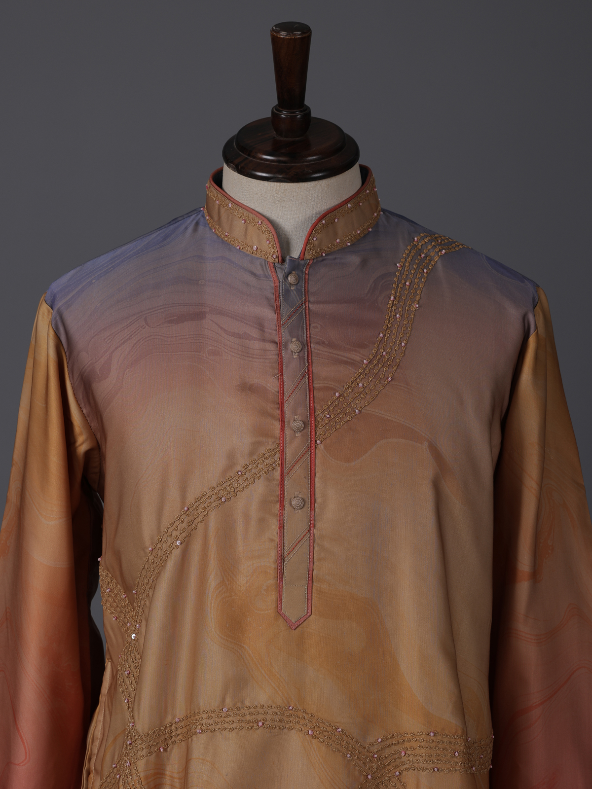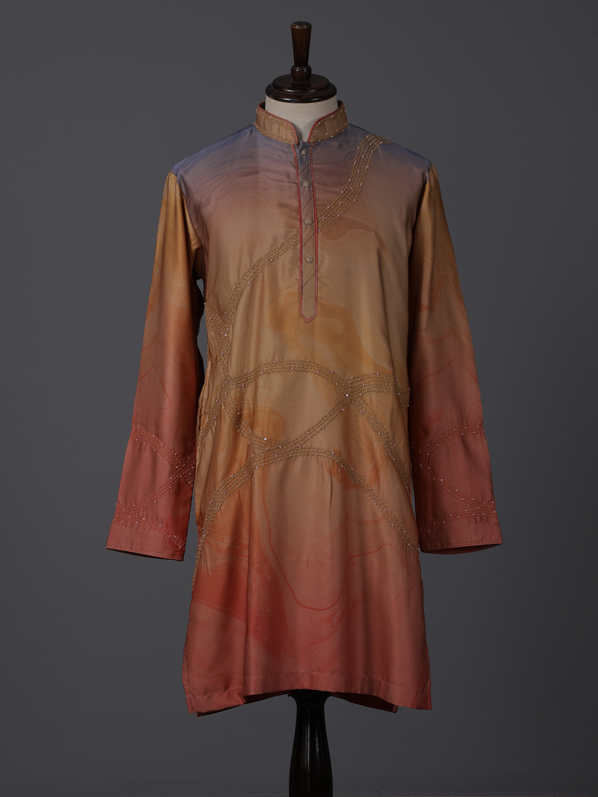 Vibrant multicolor hues bring artistic charm to this silk kurta set designed for festive occasions. Enhanced with printed patterns and thread with sequin work, it reflects lively elegance. The mandarin collar adds structure, while the smooth fabric ensures comfort. Paired with pants, this ensemble offers a bold yet refined festive appeal.