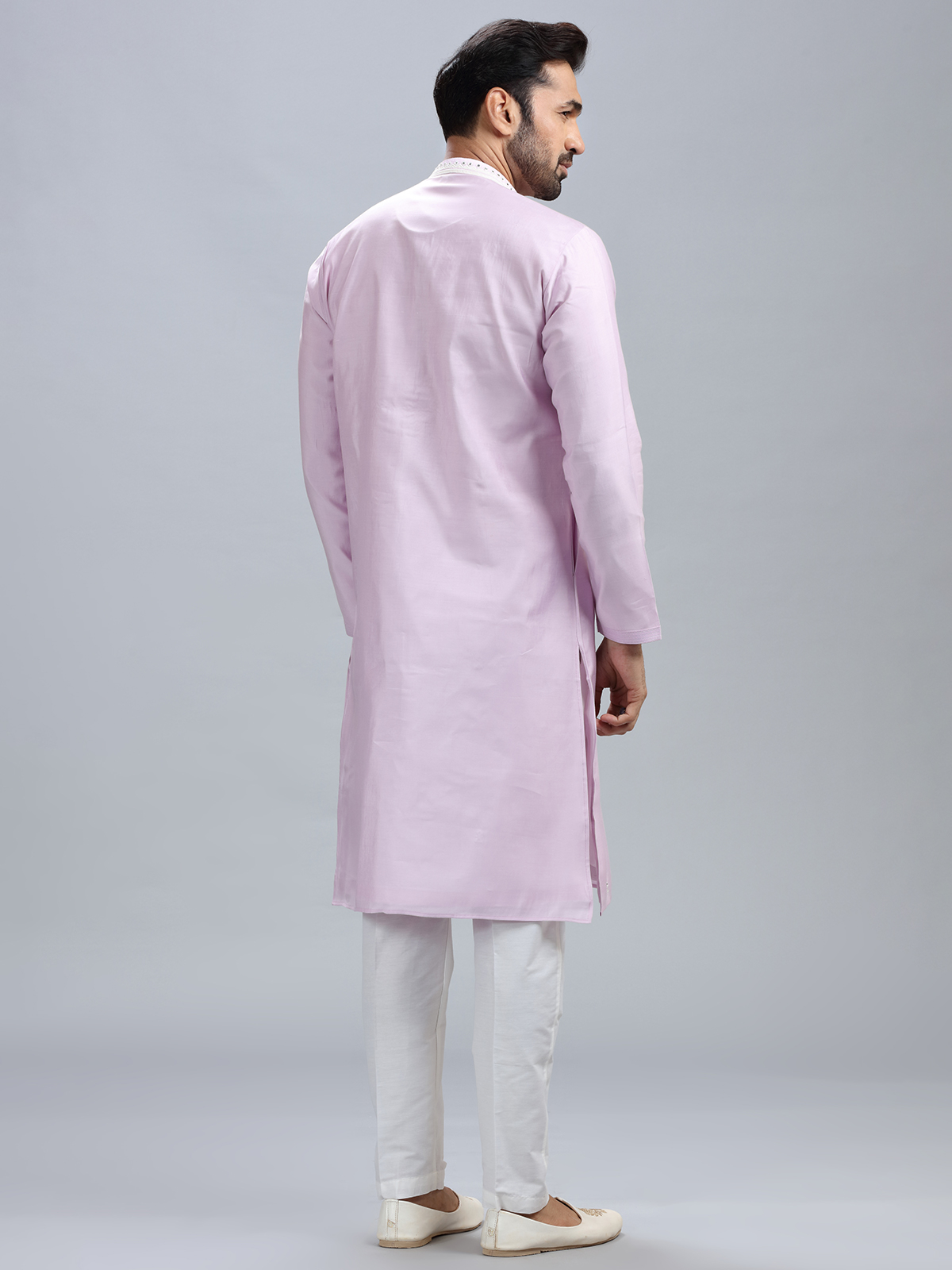 Newest Lilac Cotton Silk Kurta Suit For Men