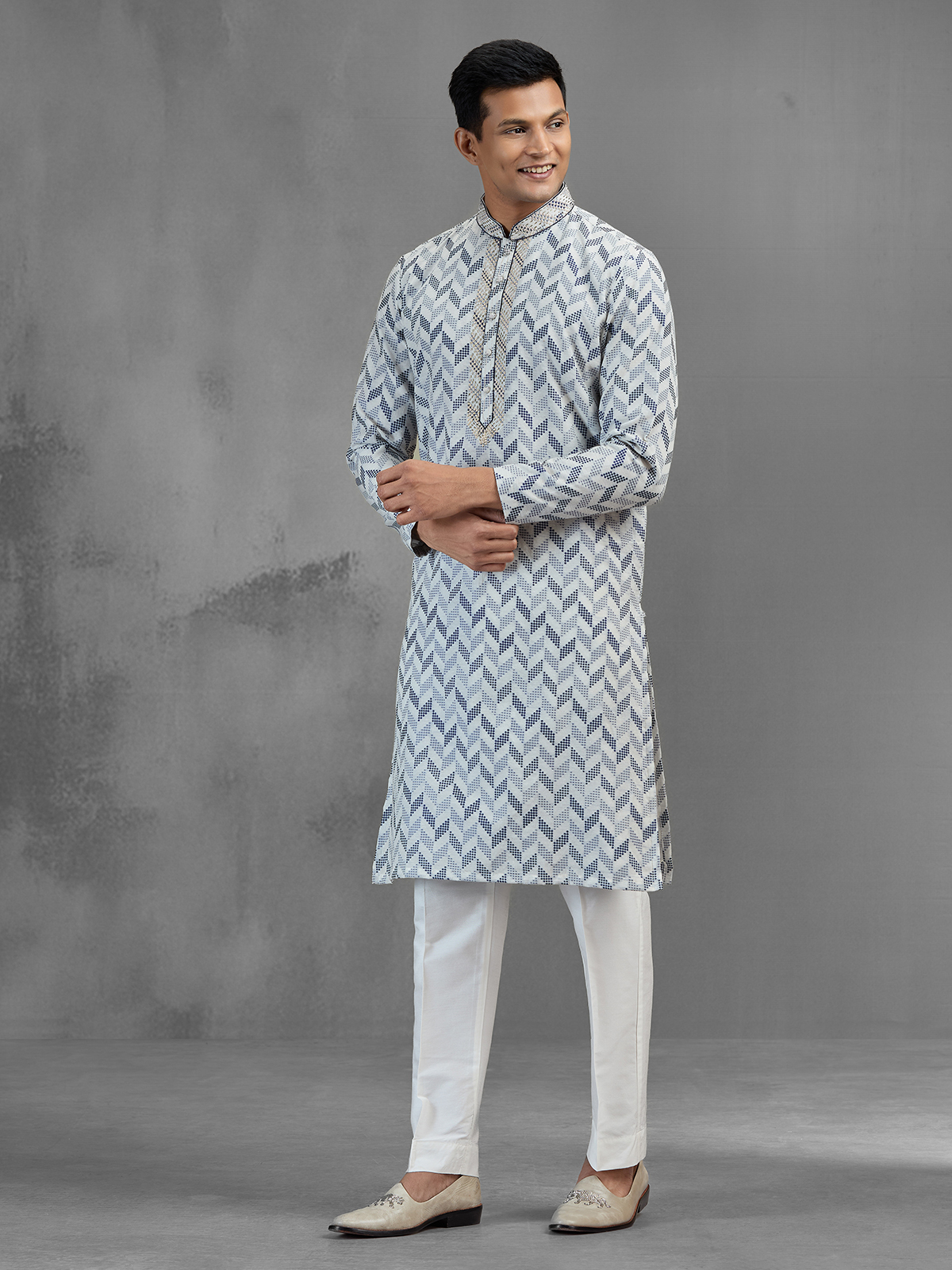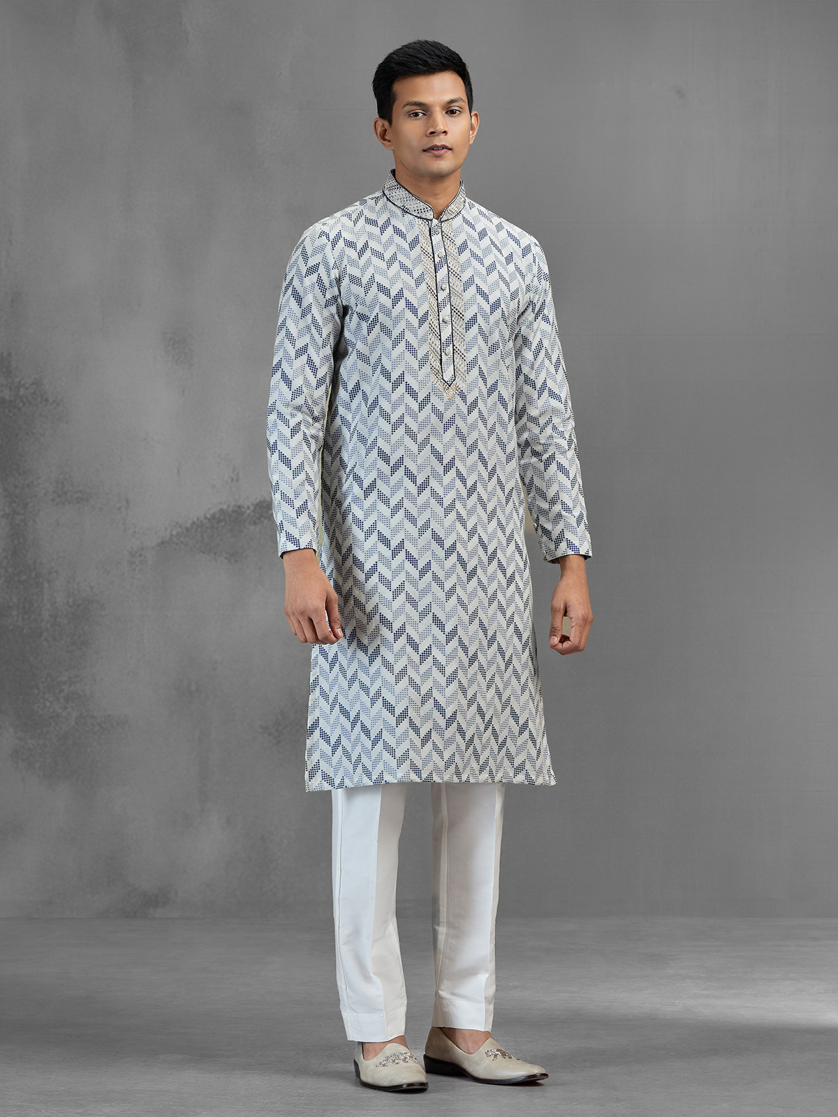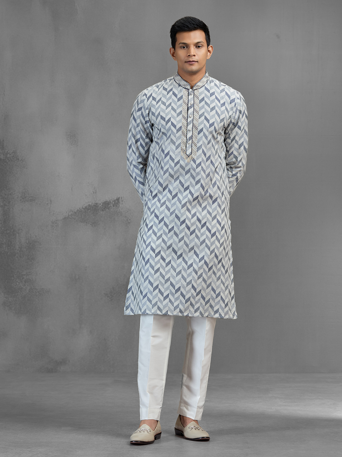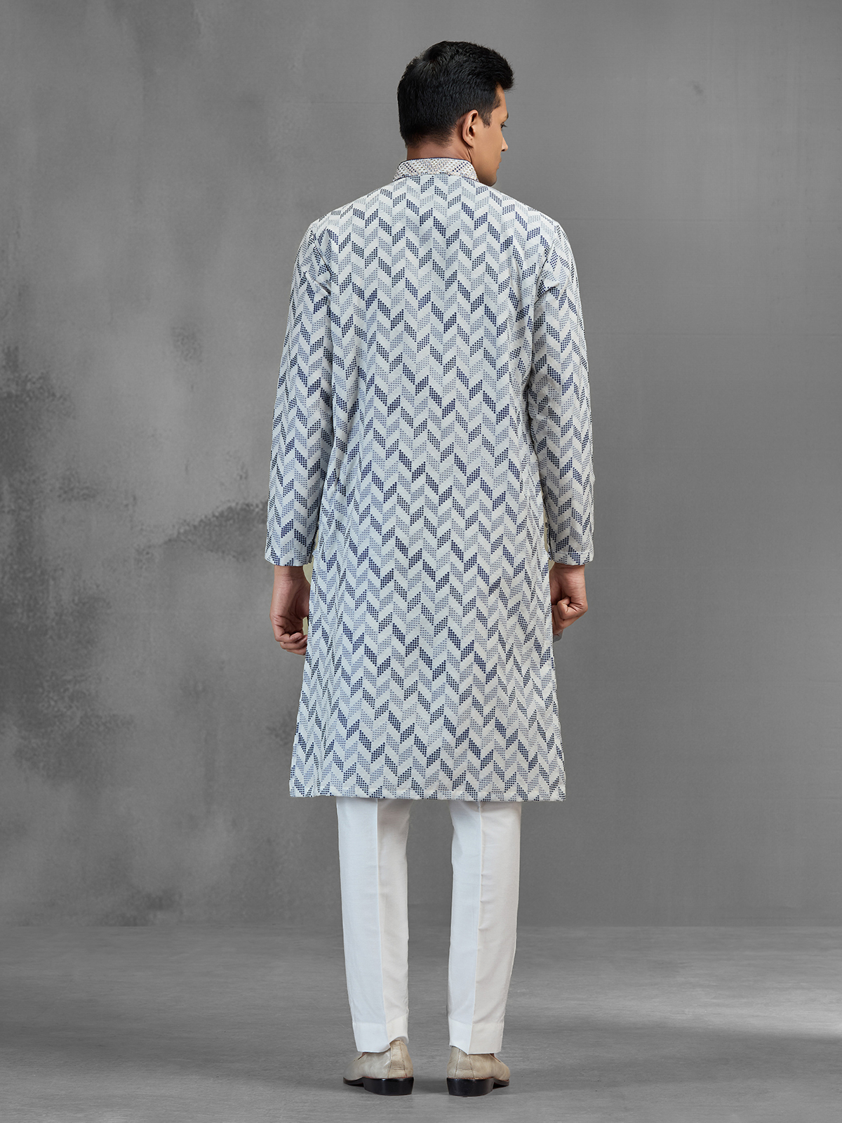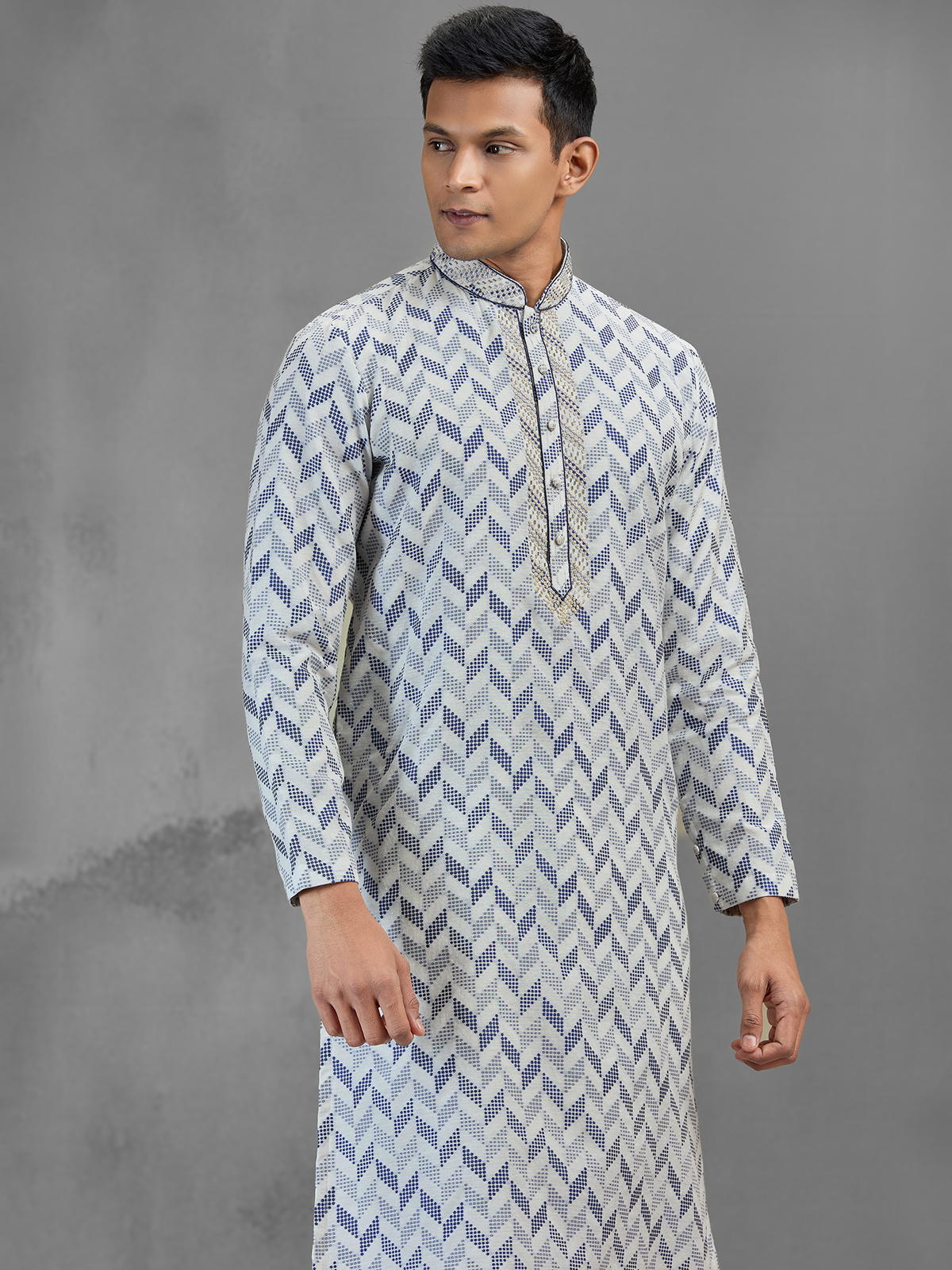 Off White Chevron Embroidered Banarasi Silk Festive Kurta Pajama