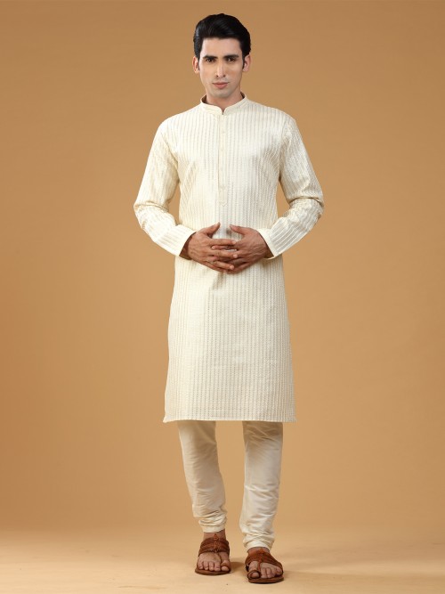 Off White Embroidery Kurta Suit