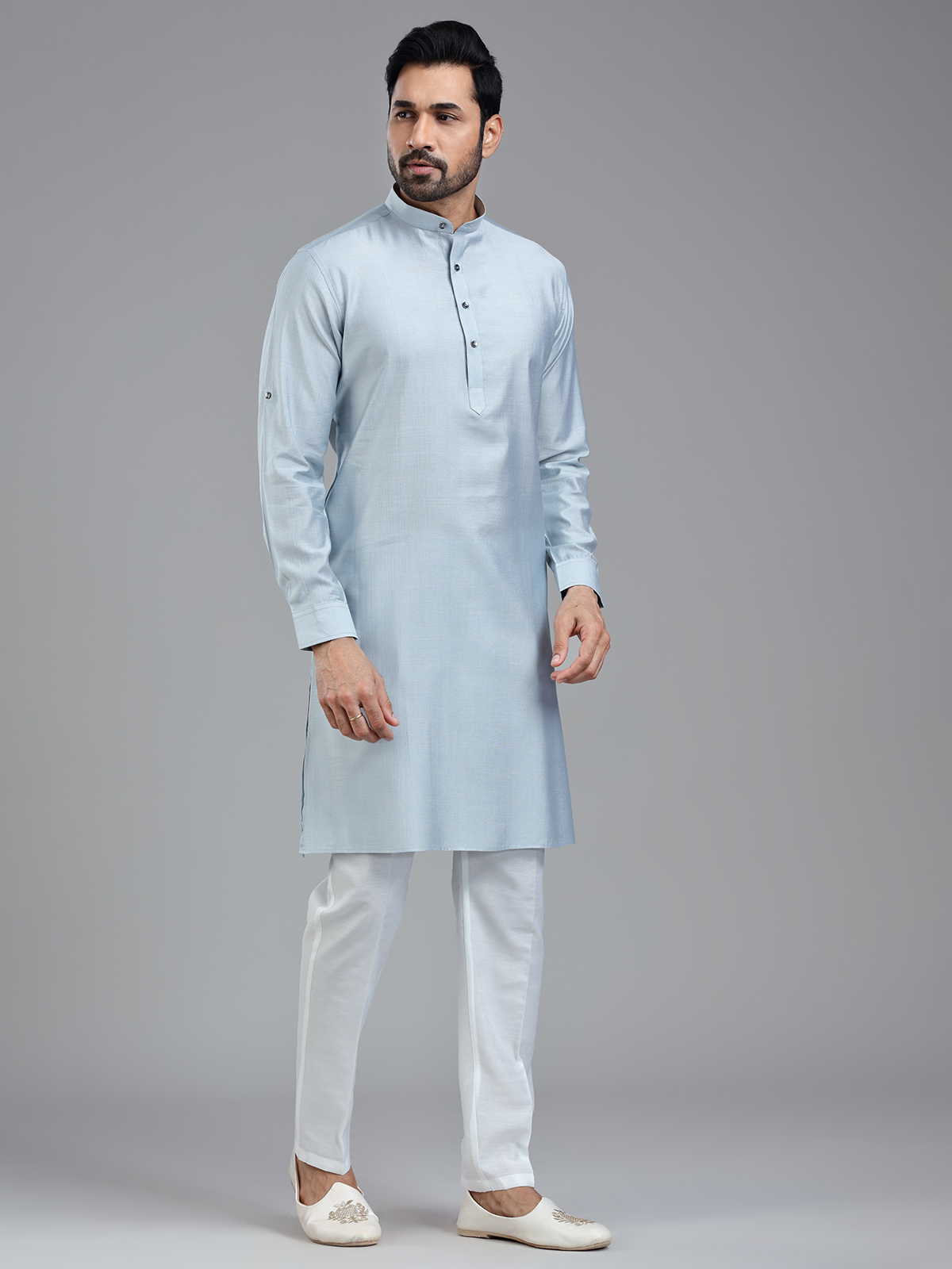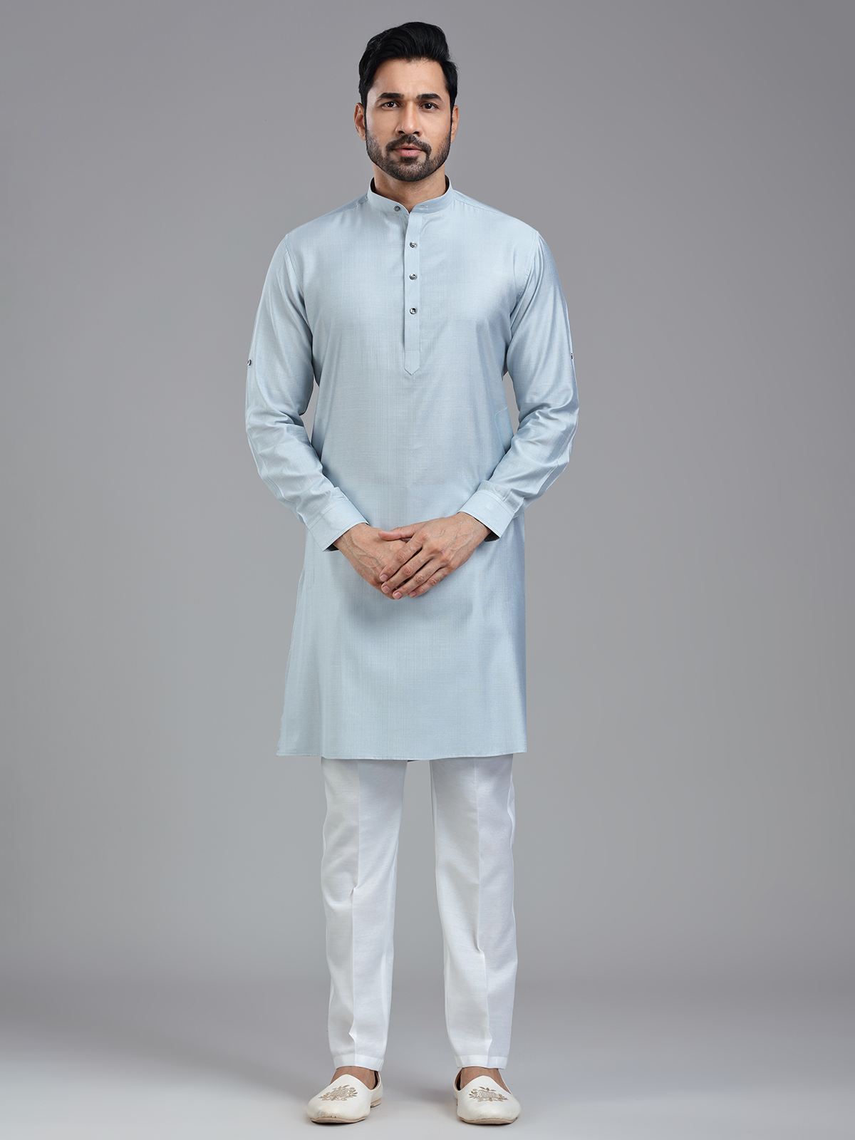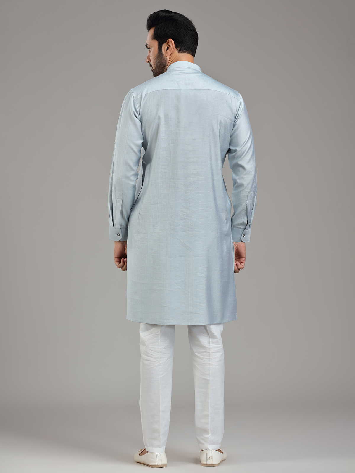 Pastle Blue Festive Wear Kurta Pajama For Men