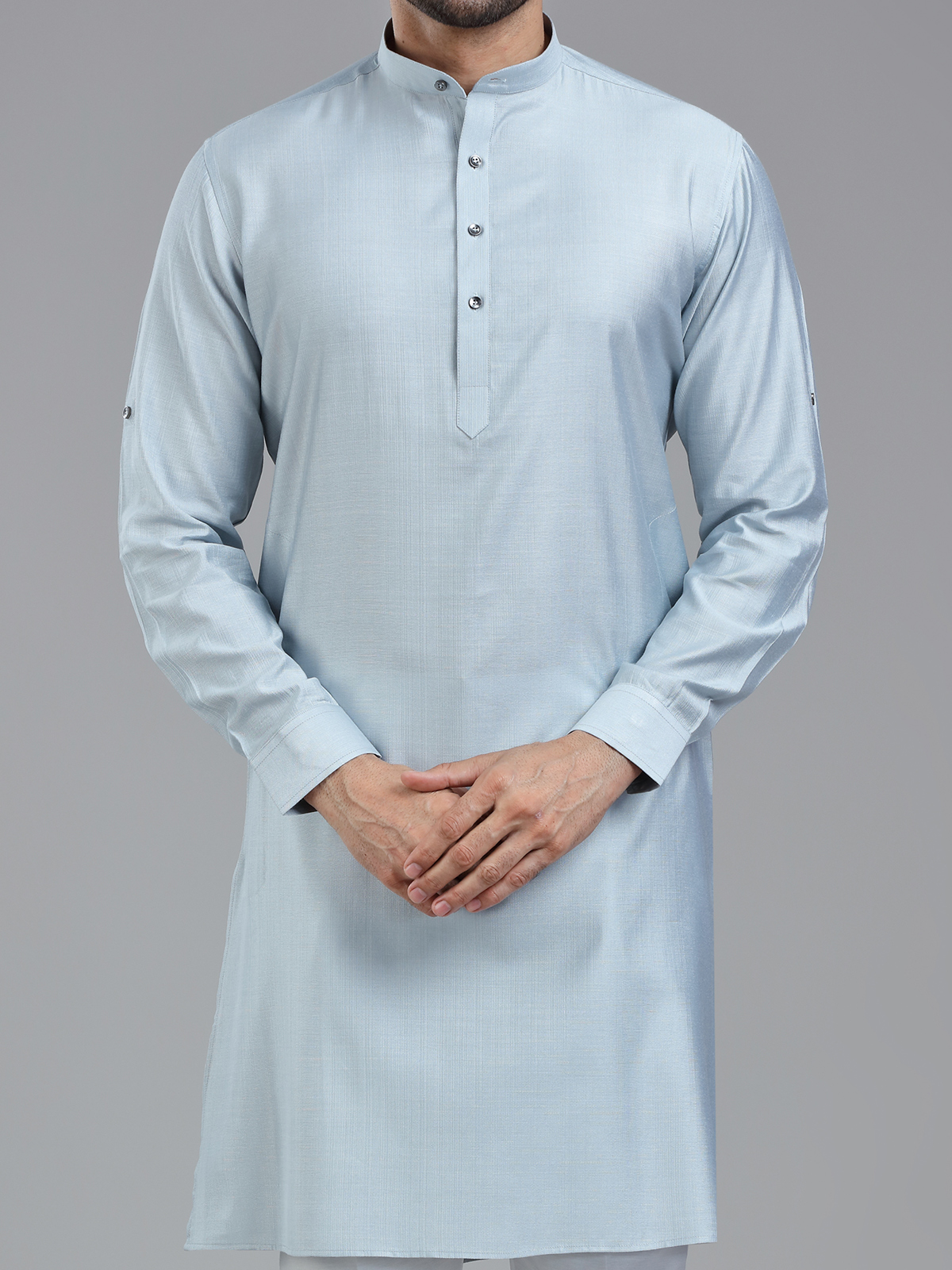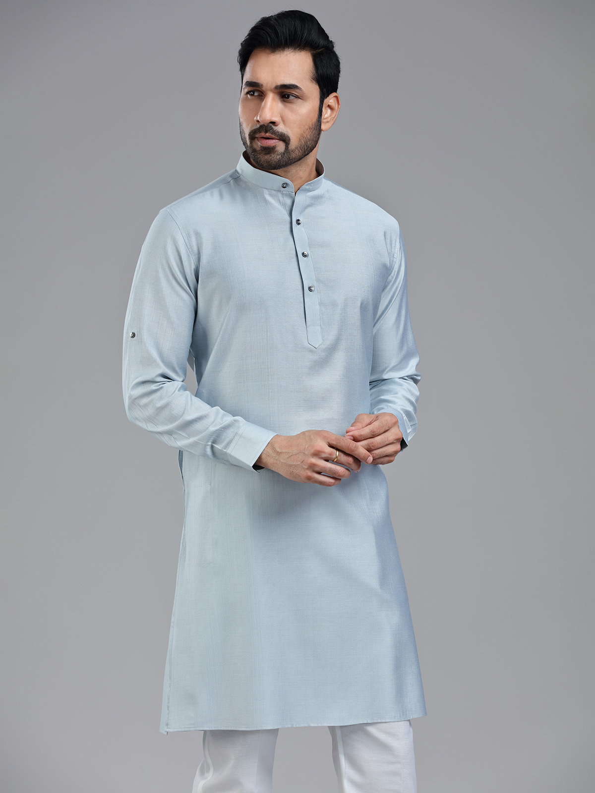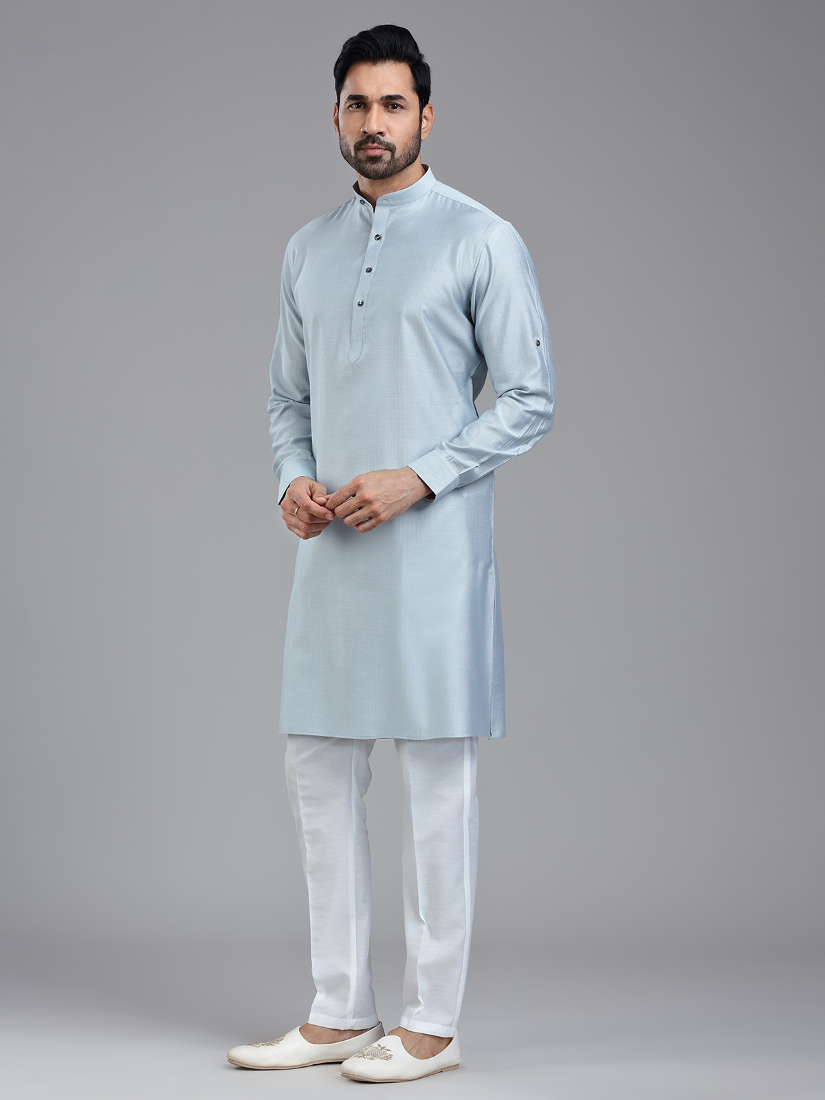 Pastle Blue Festive Wear Kurta Pajama For Men