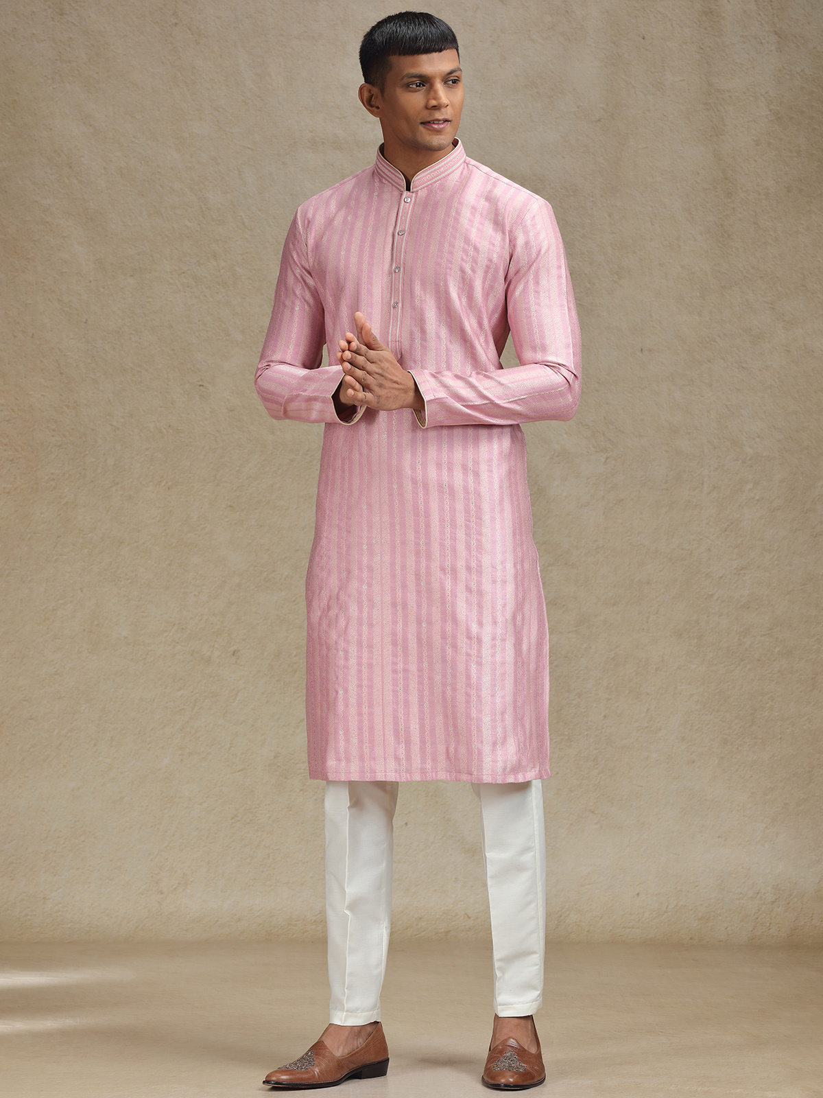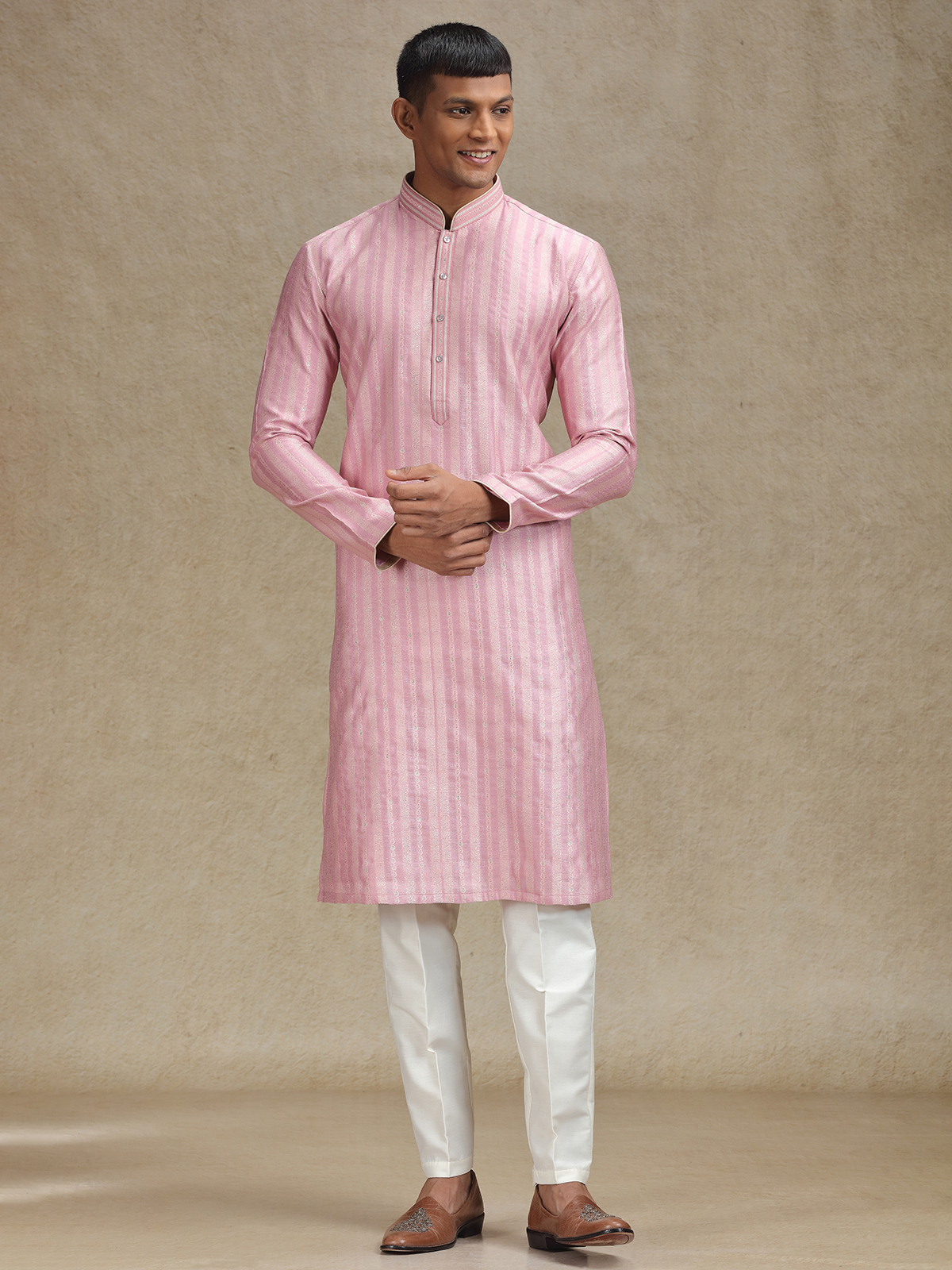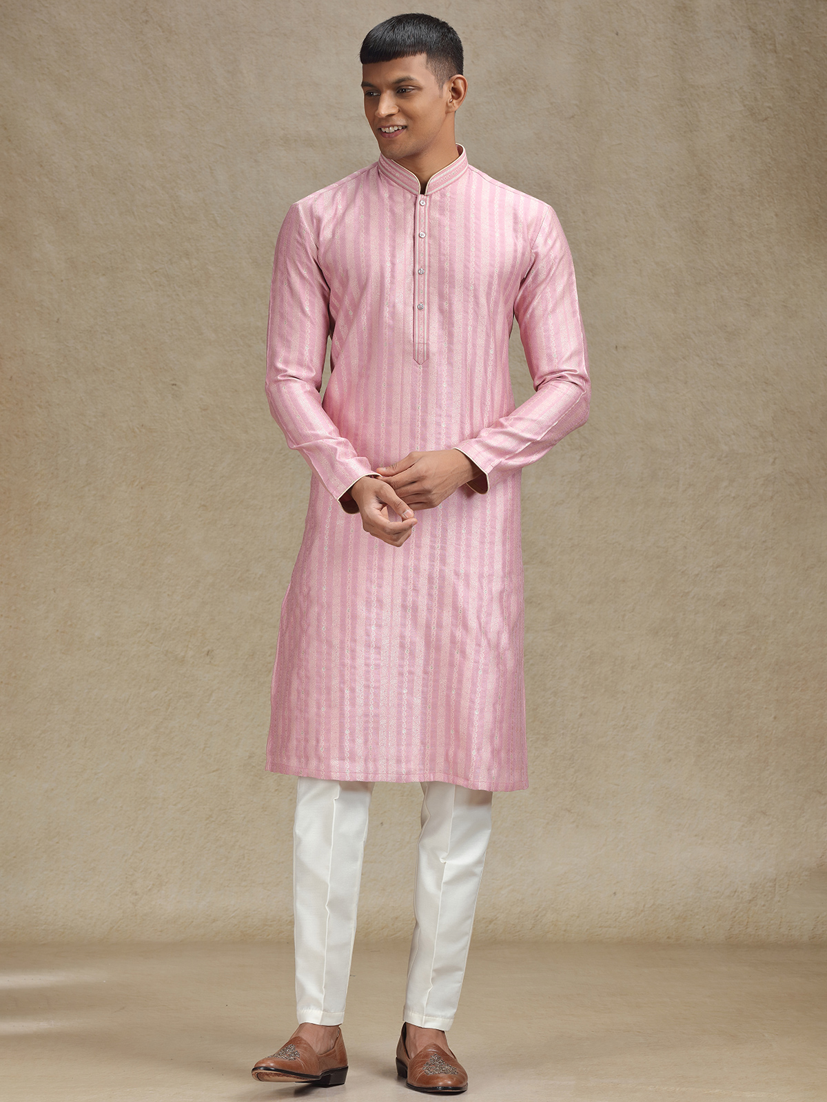 Pink Kurta Pajama Set With Stylish Textured Stripes