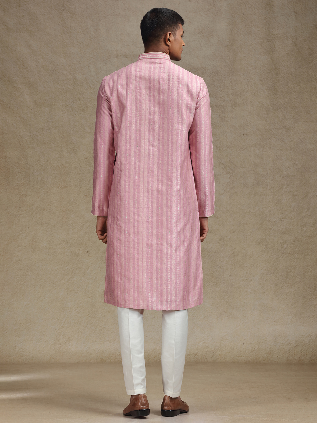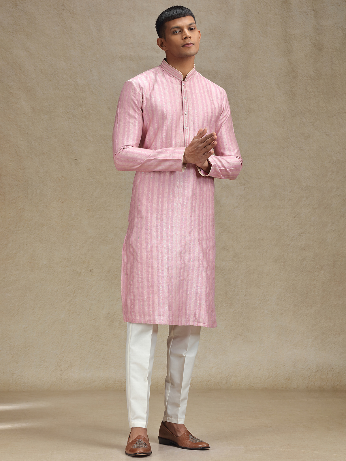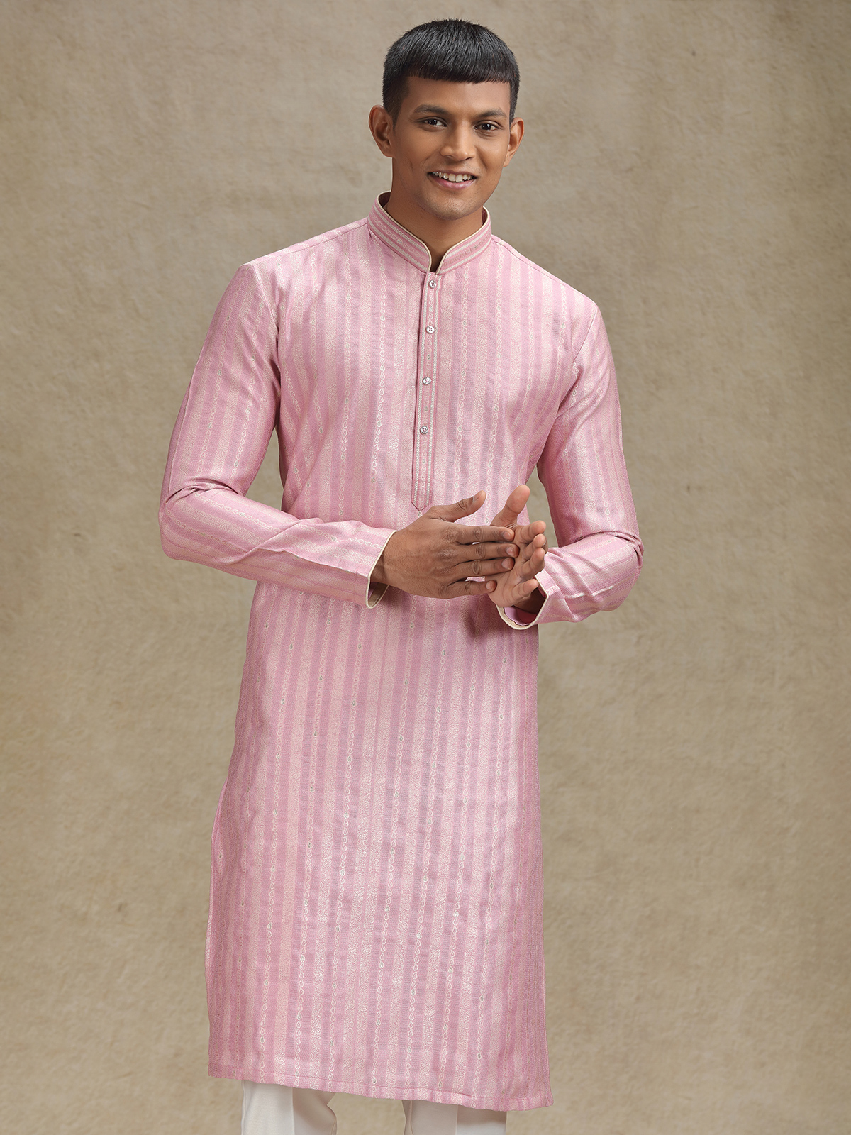 Pink Kurta Pajama Set With Stylish Textured Stripes