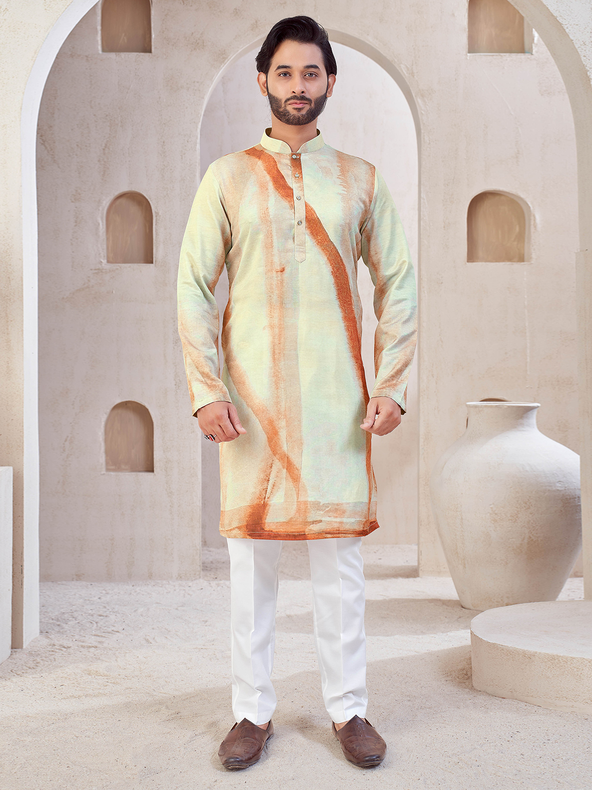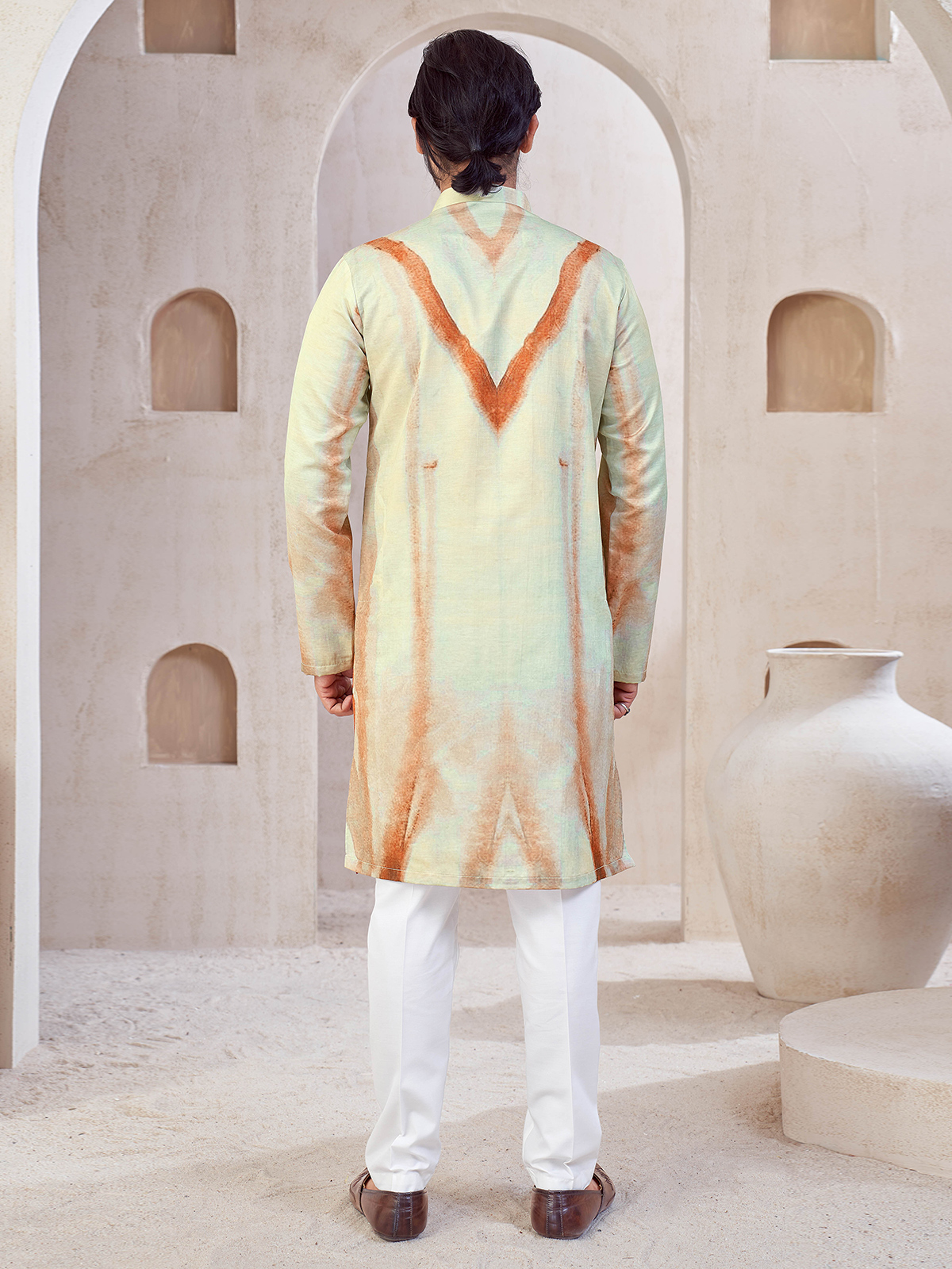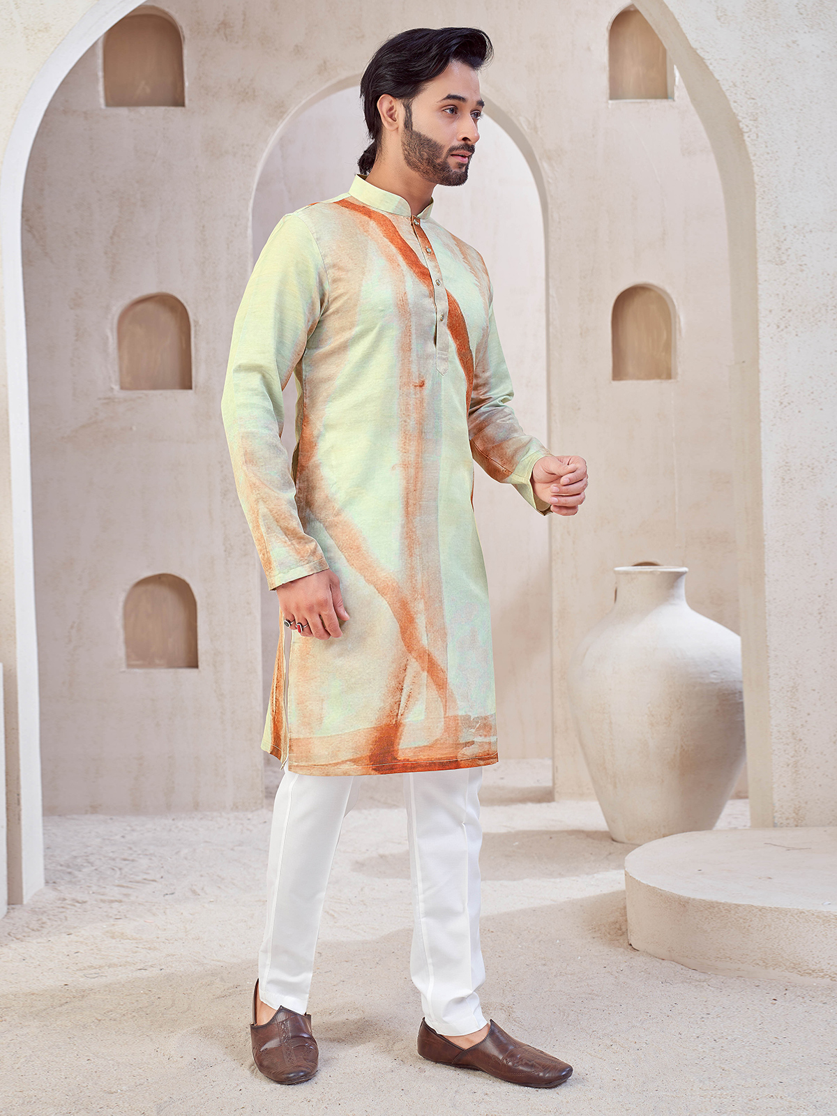 Embrace functional fashion with this pista green cotton kurta set, designed for both comfort and cultural flair. Featuring a vibrant floral print and a mandarin collar, this piece is ideal for daytime festivities. Comes complete with matching bottoms for a coordinated look.