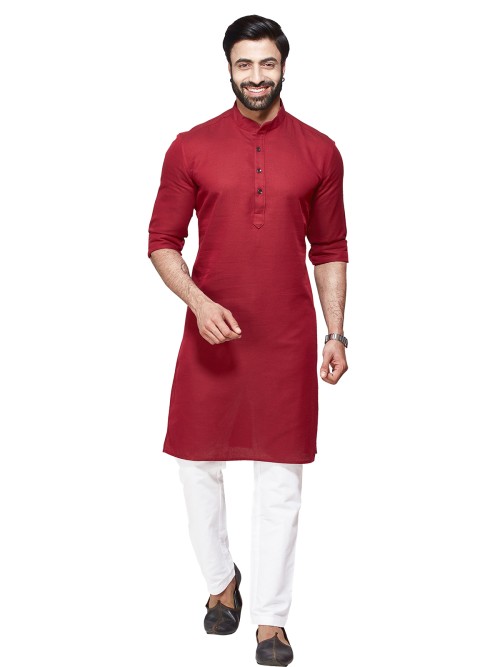 Make a stylish statement in our maroon cotton plain kurta suit. Complete with full sleeves and a mandarin collar, this ensemble promises compliments for your impeccable sense of style. Comes with a bottom.