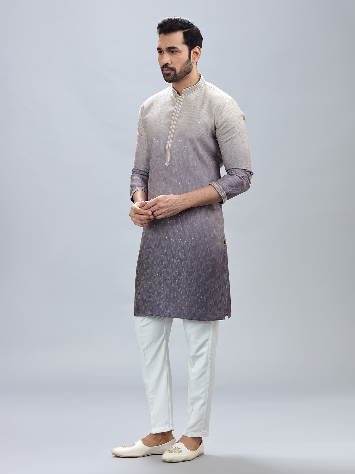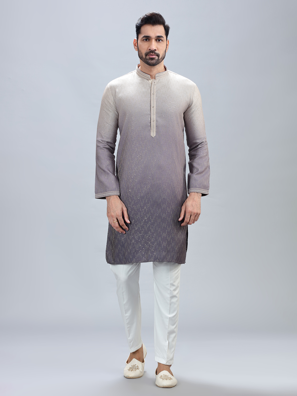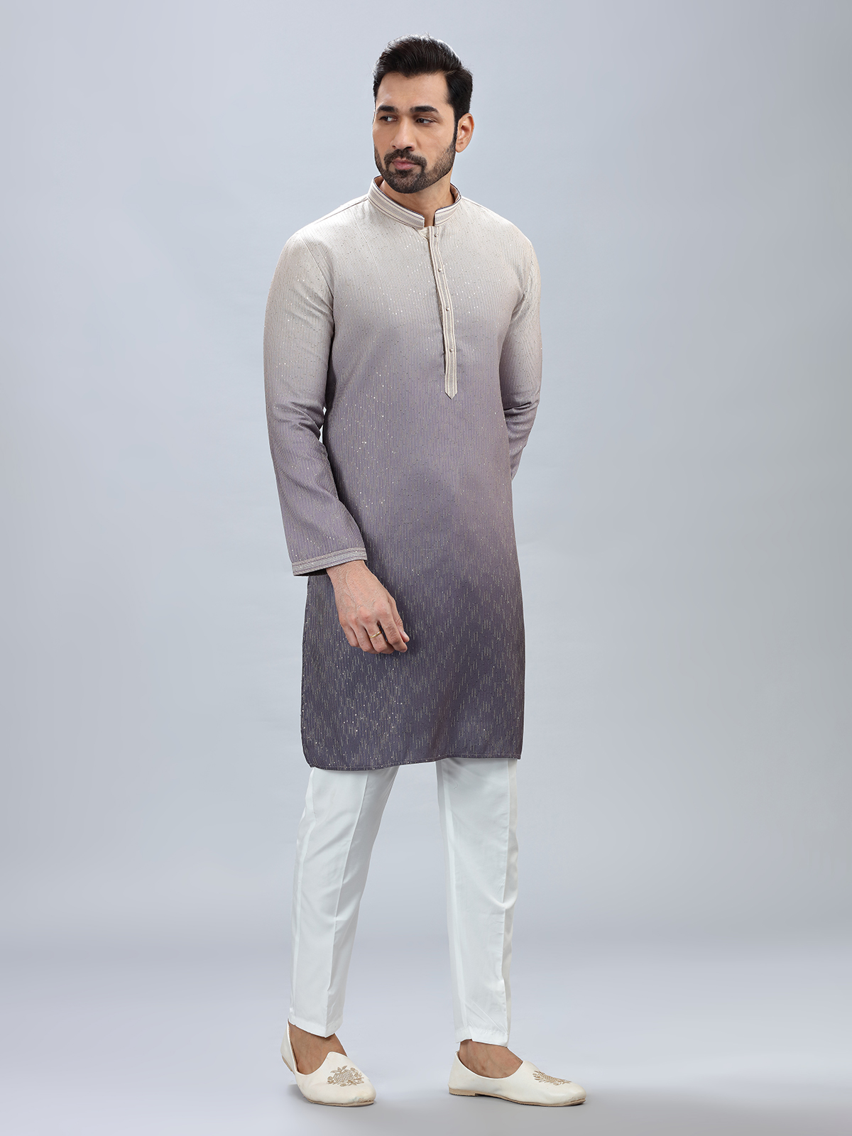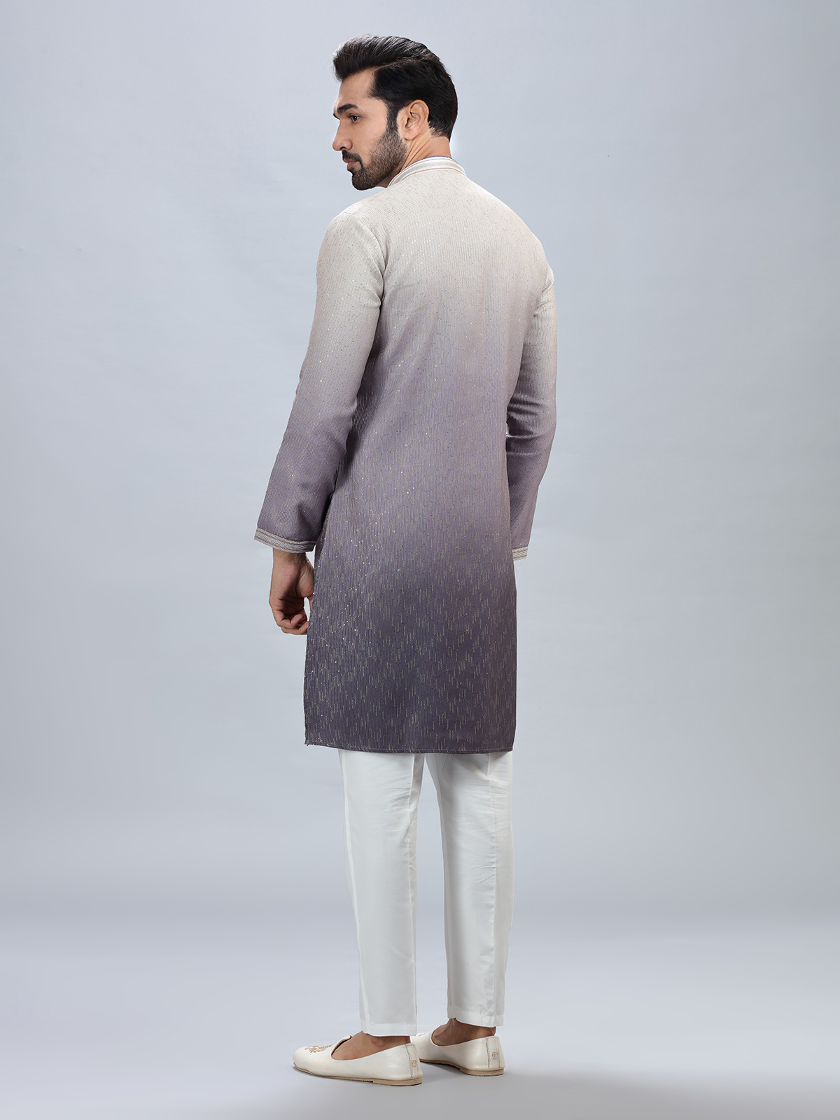 Presenting this purple kurta set, which features sequins and thread work throughout and is made of georgette fabric for optimal comfort on warm days. This one is fashionable with its mandarin collar and full sleeves. also comes with a matching bottom.