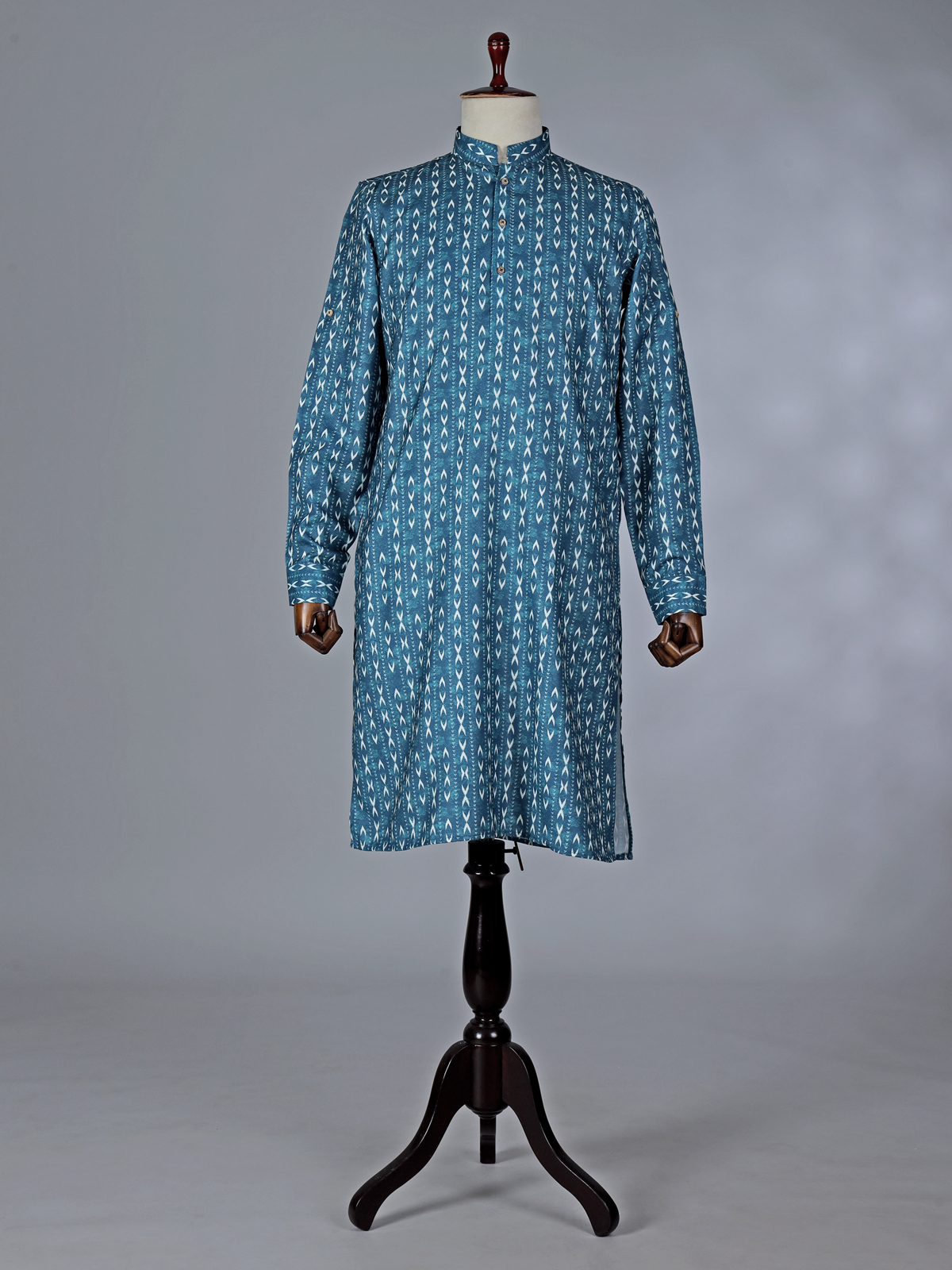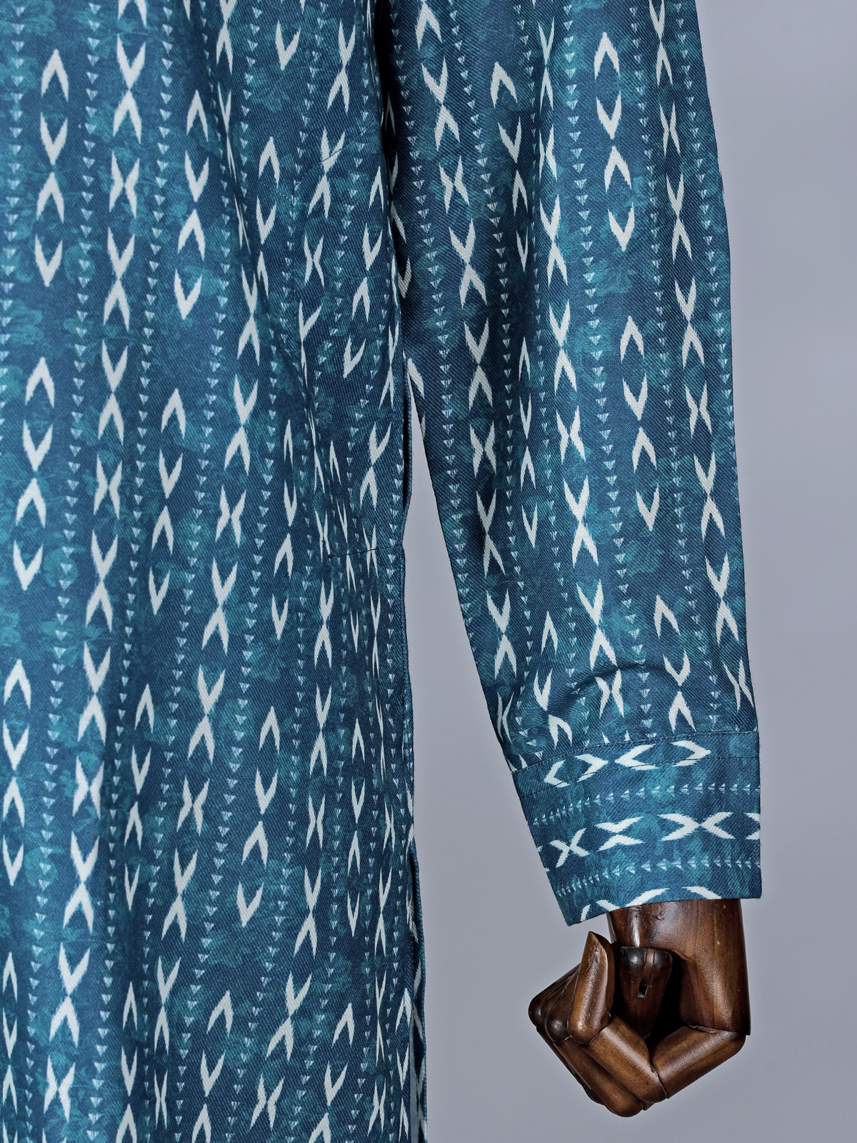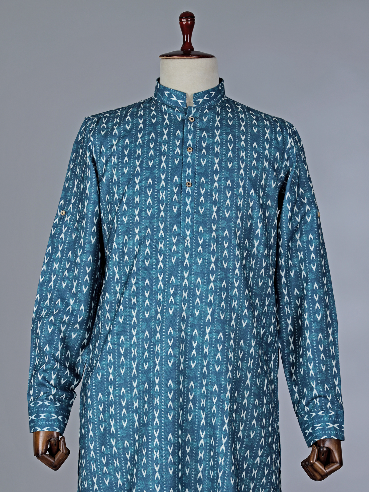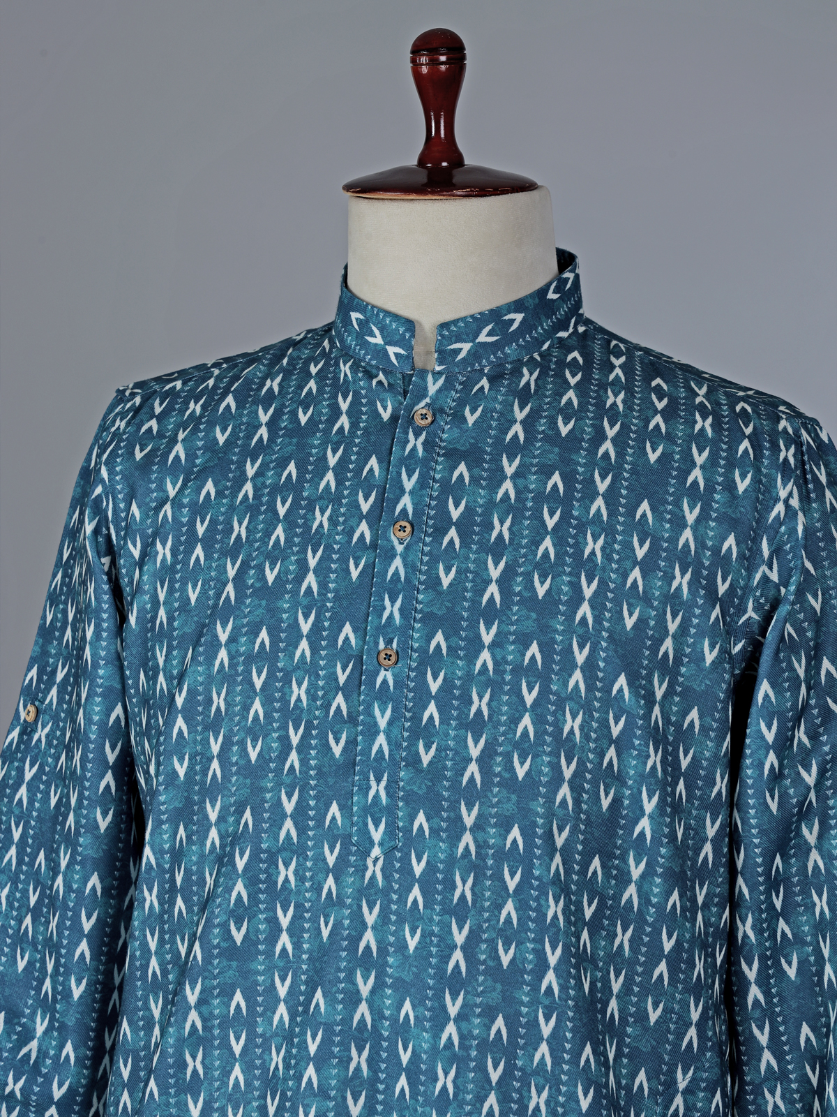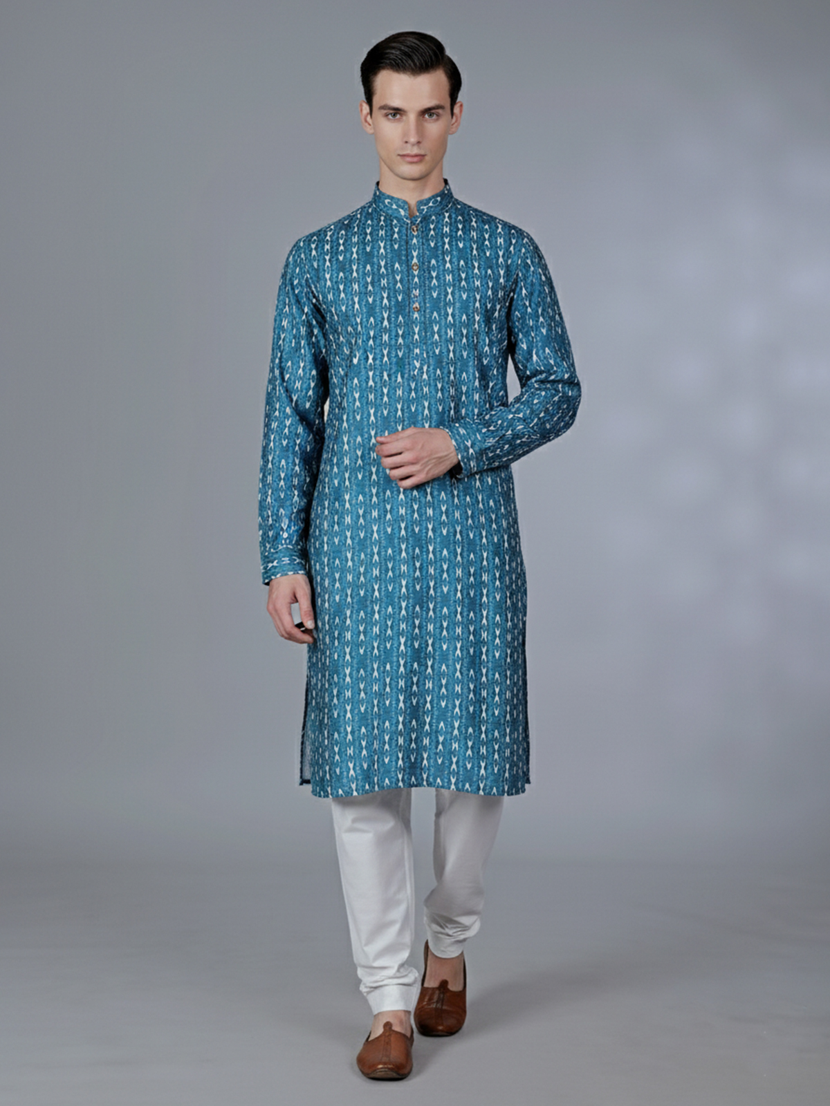 This rama blue cotton kurta suit adds freshness to festive attire. Featuring tasteful printed detailing, the kurta is styled with a chinese collar with half button placket and fulla sleeves that enhances its sharp silhouette. The lightweight cotton fabric ensures comfort, while pant complete the coordinated look. Suitable for festival and Eid celebrations, this ensemble offers a perfect blend of vibrancy and elegance.