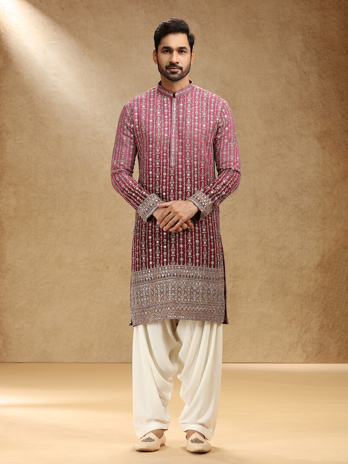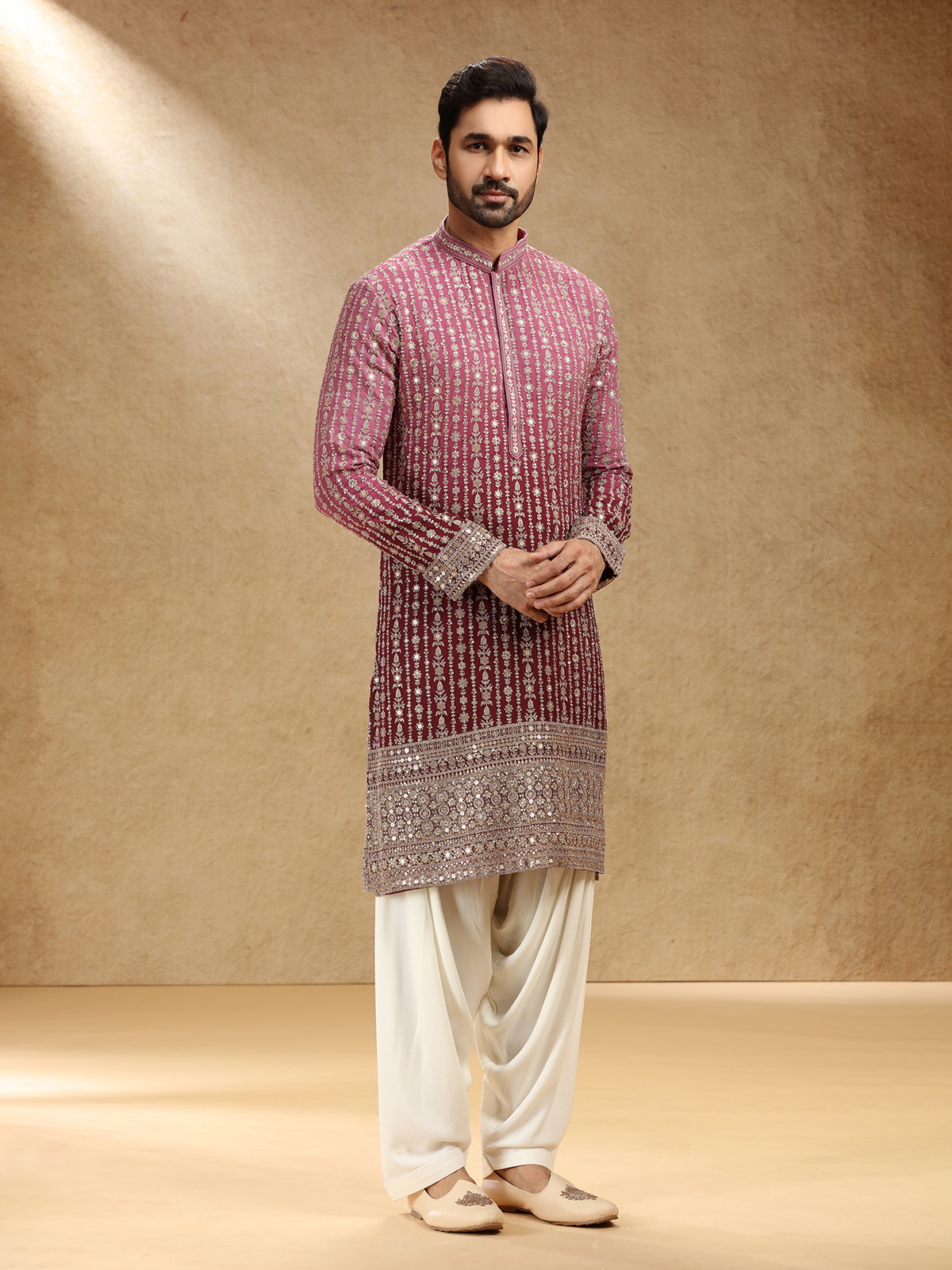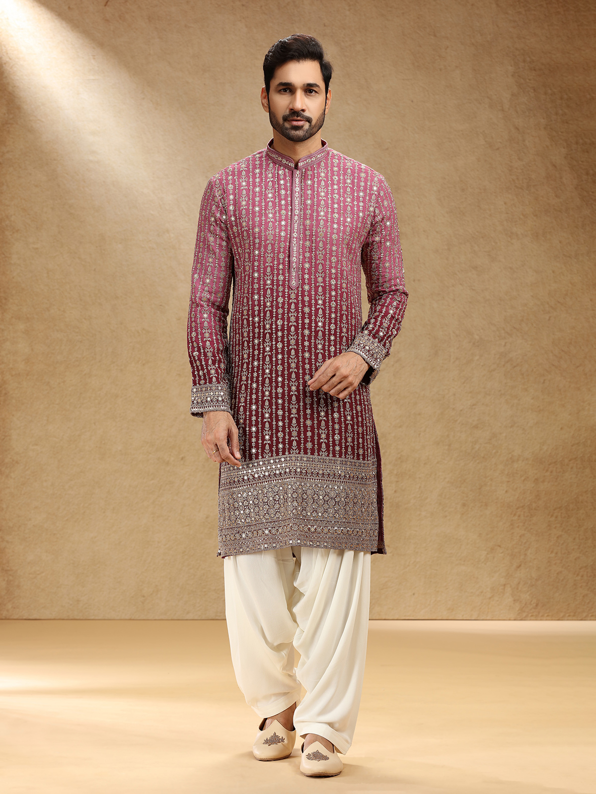 Shaded Wine Georgette Festive Kurta Pajama For Men