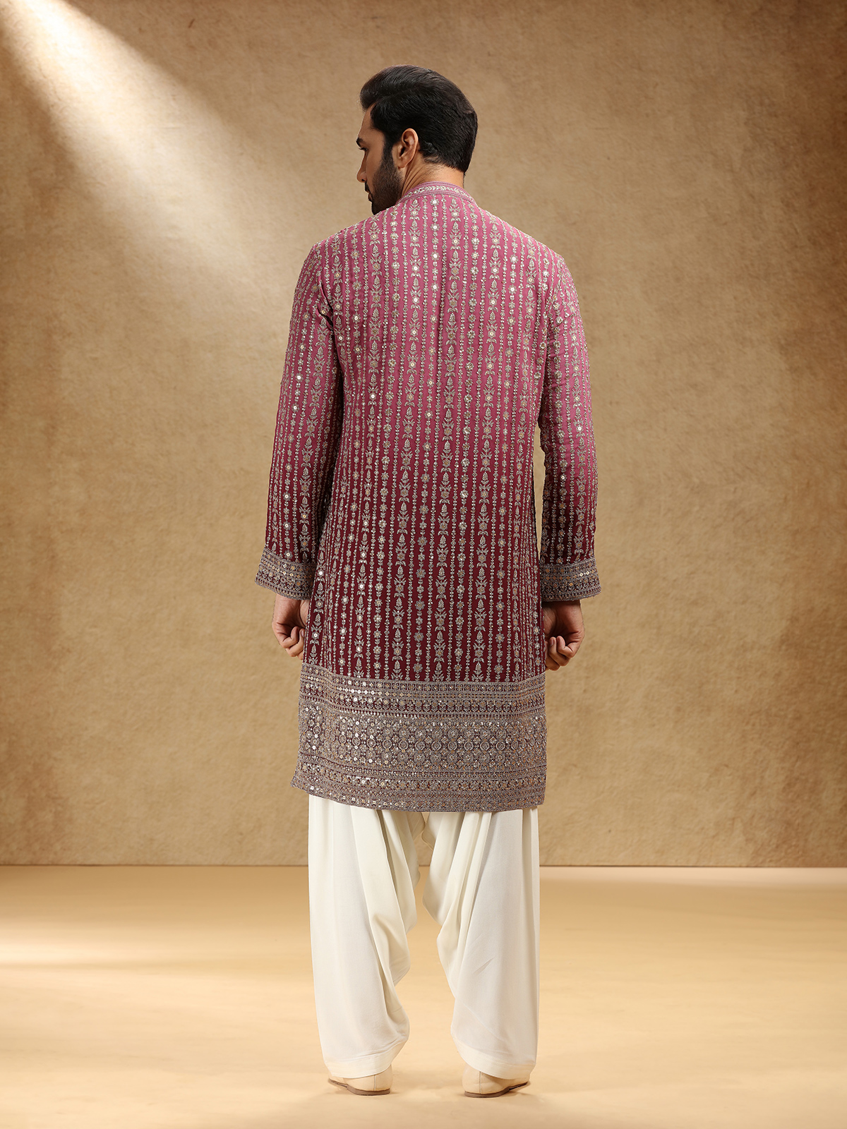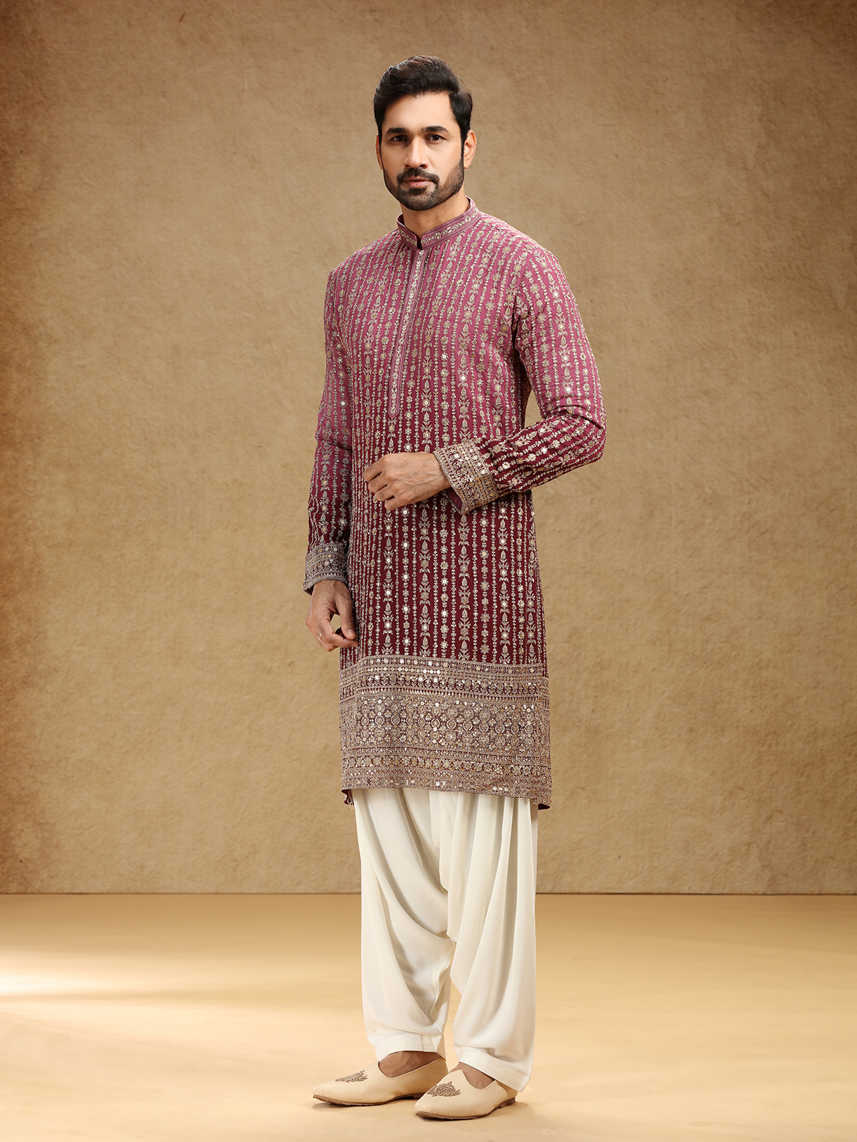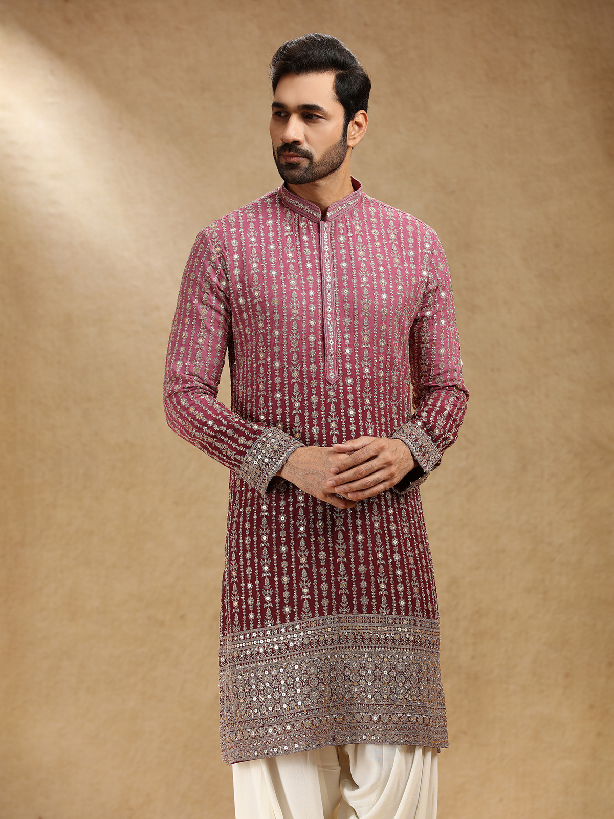 Shaded Wine Georgette Festive Kurta Pajama For Men