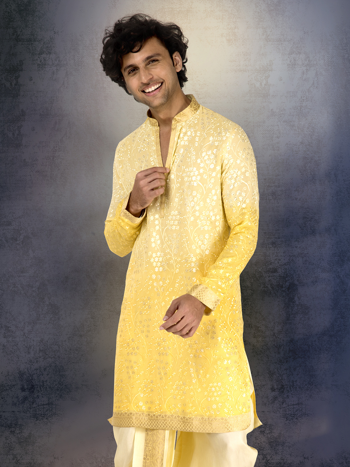 Shaded Yellow Georgette Kurta Dhoti Set For Haldi