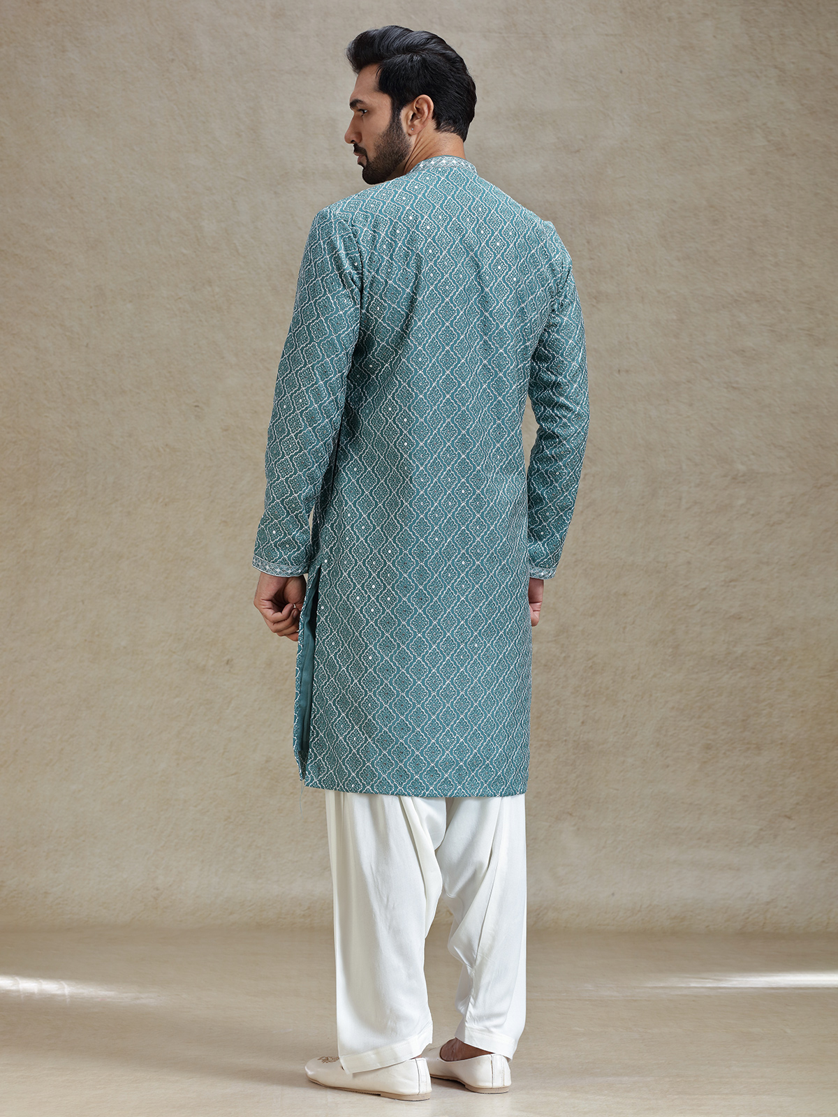 Symmetrical Embroidery English Green Serene Kurta Set In