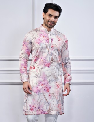 Trendy Floral Printed Pink Cotton Kurta Suit